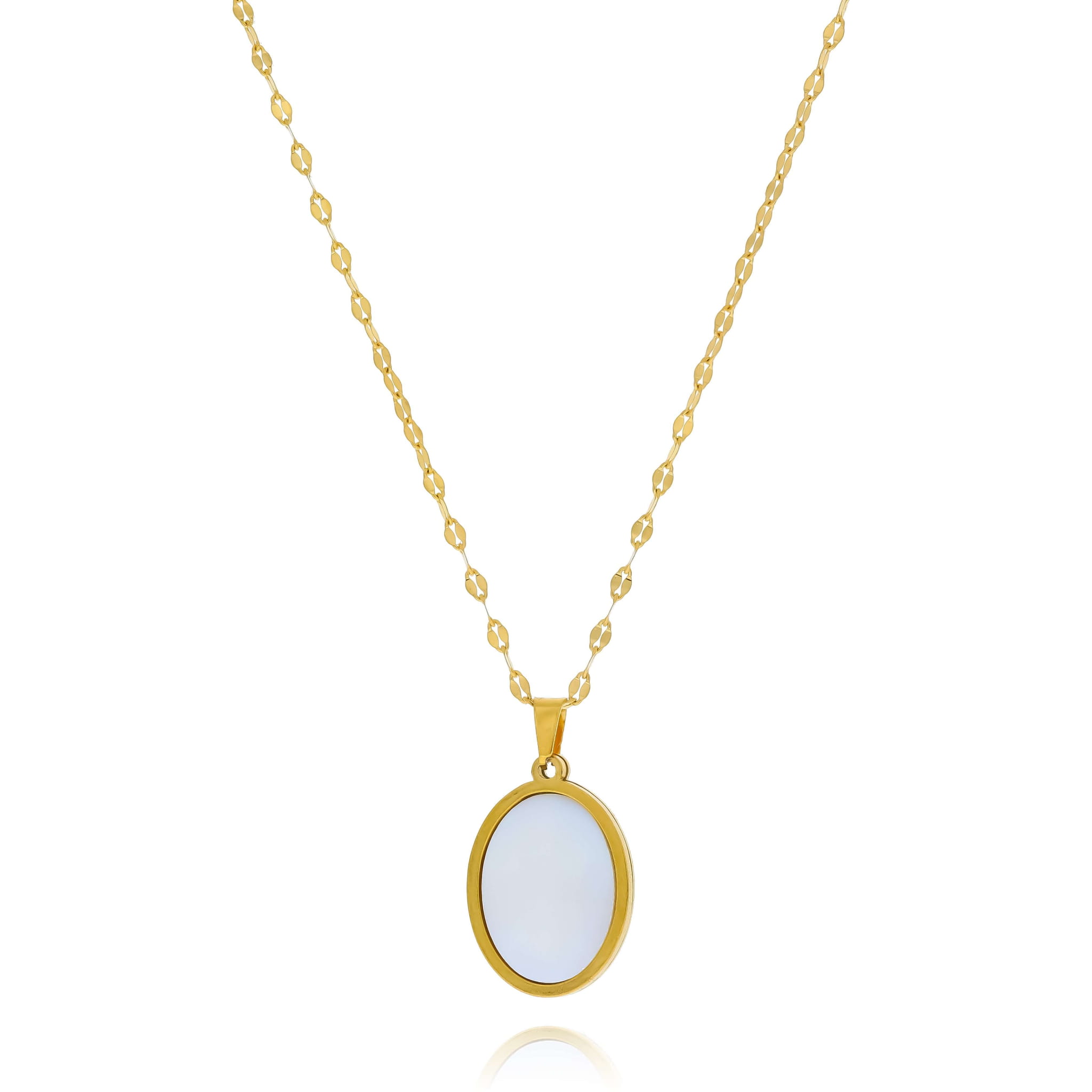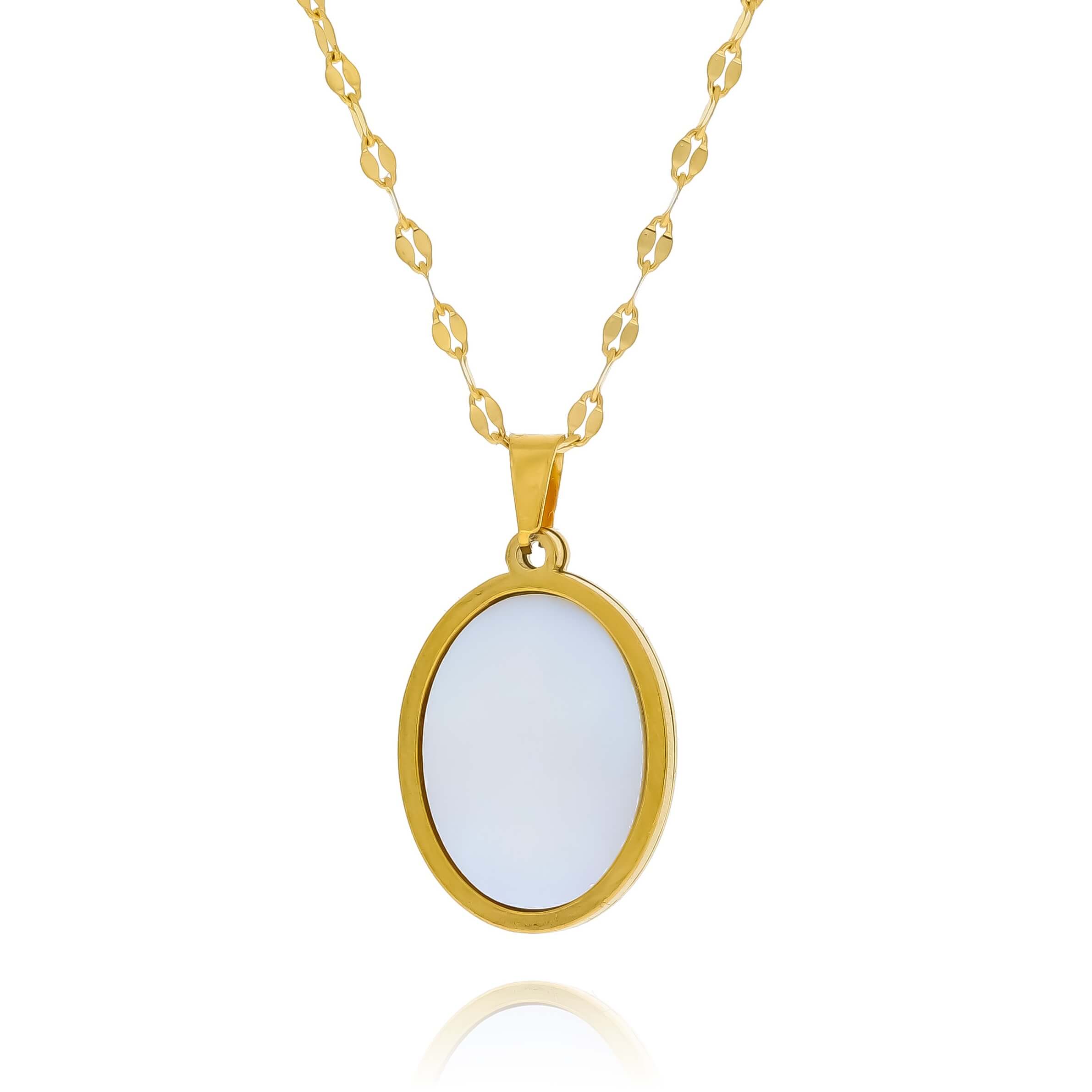 NASZYJNIK MEDALION Z MASĄ PERŁOWĄ STAL SZLACHETNA