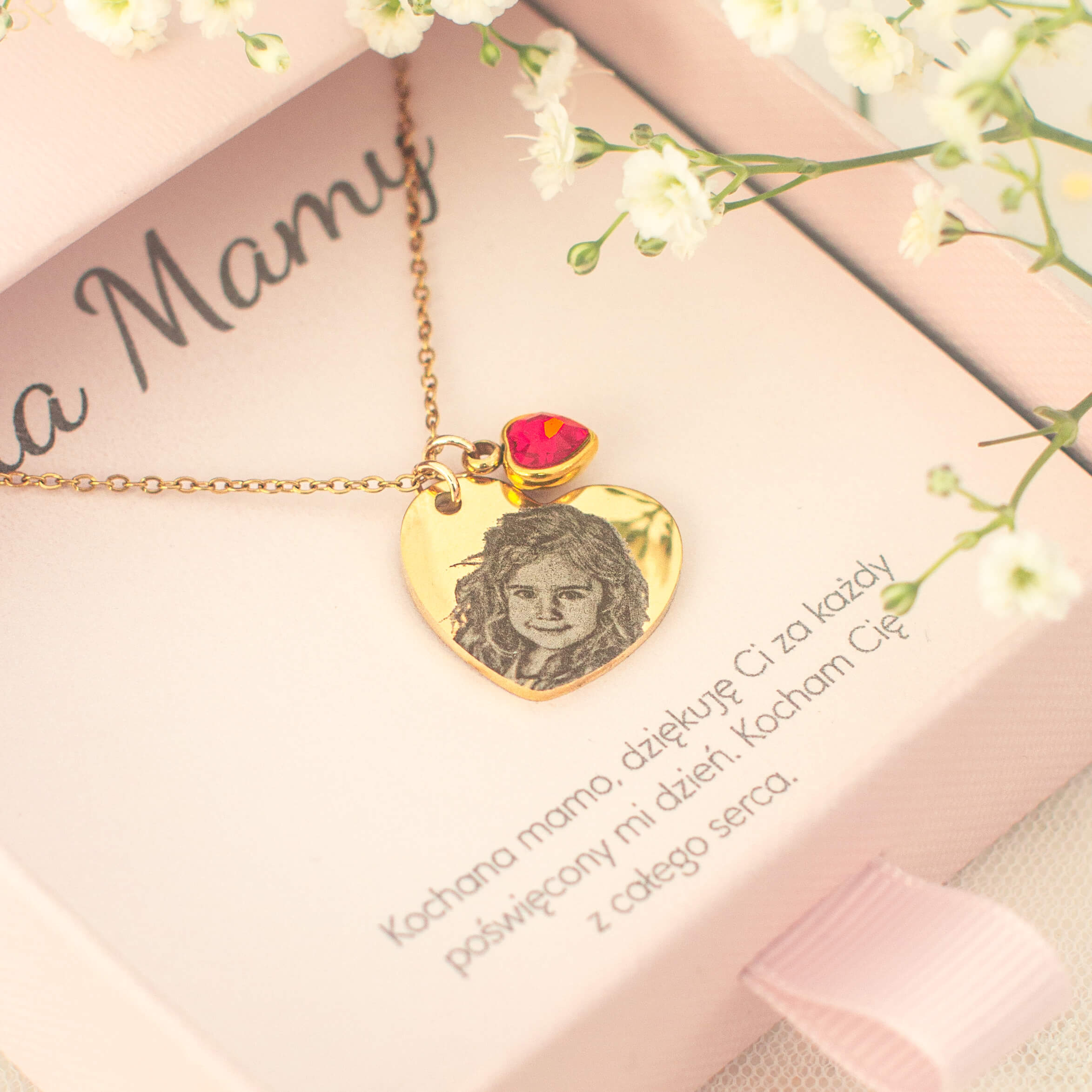 NASZYJNIK PERSONALIZOWANY ZE ZDJĘCIEM SERCE GRAWER PREZENT DLA MAMY