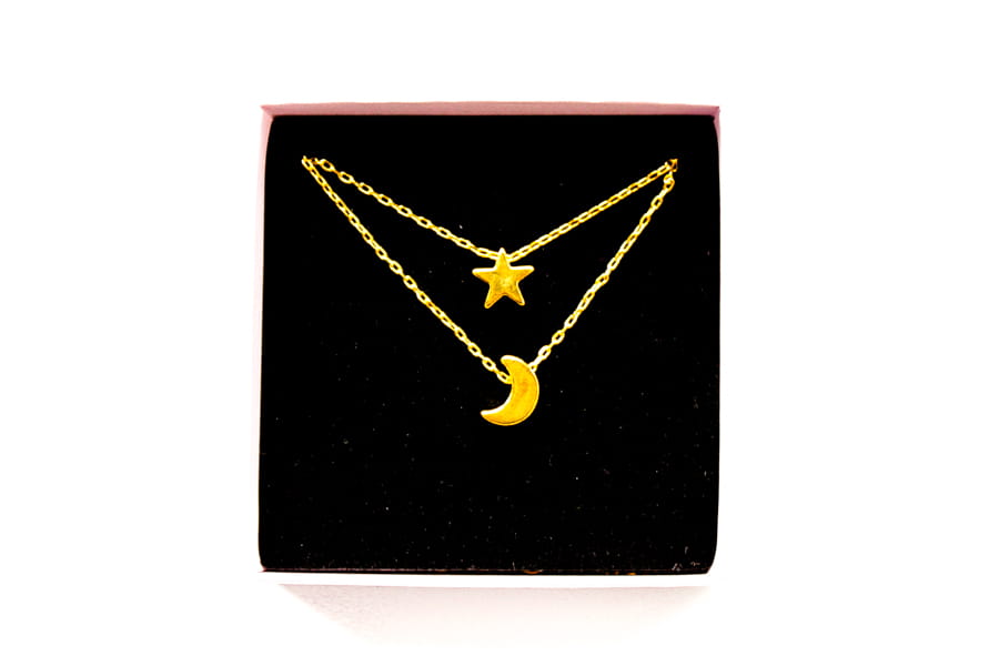 NASZYJNIK ZŁOTY PODWÓJNY ZAWIESZKI GWIAZDKA KSIĘŻYC