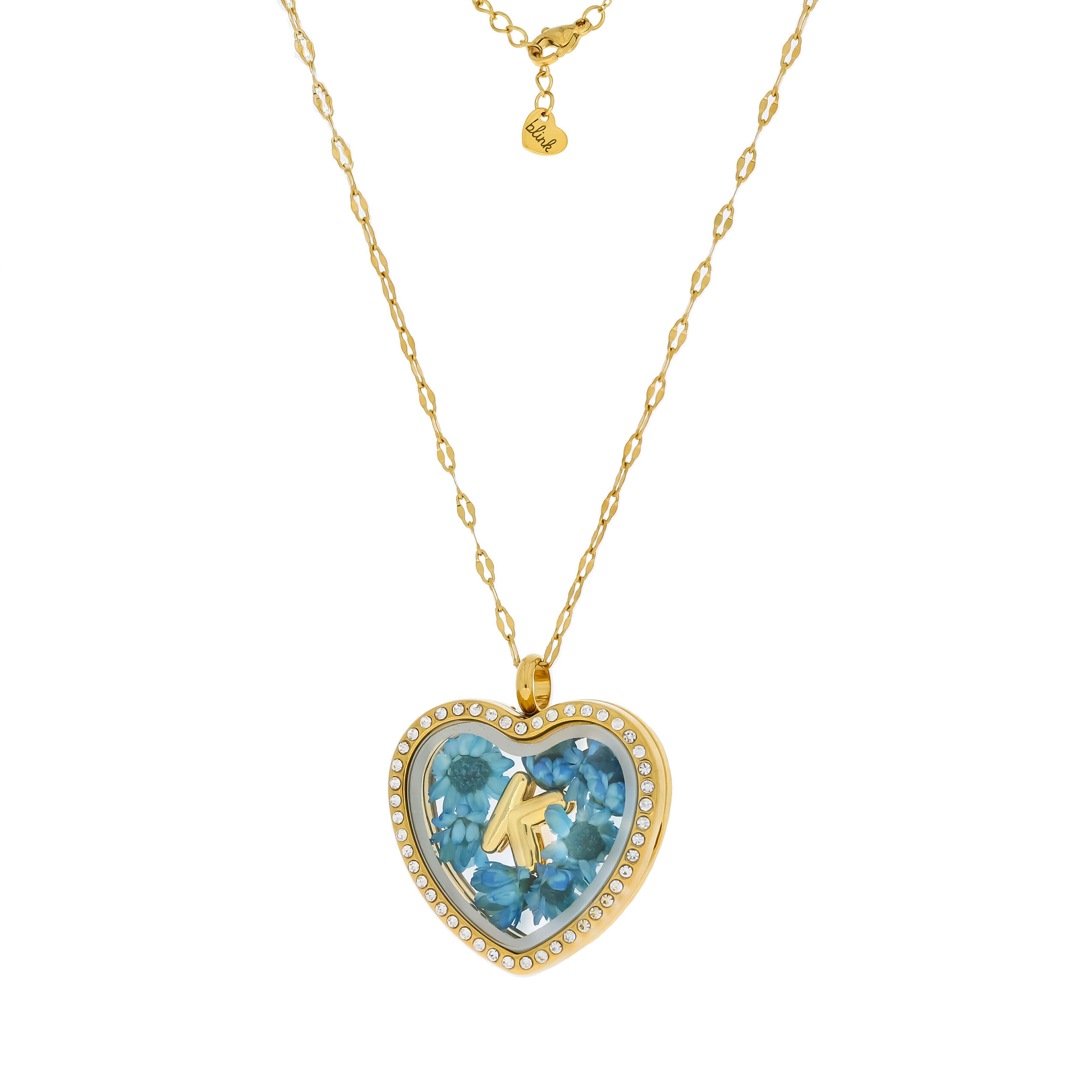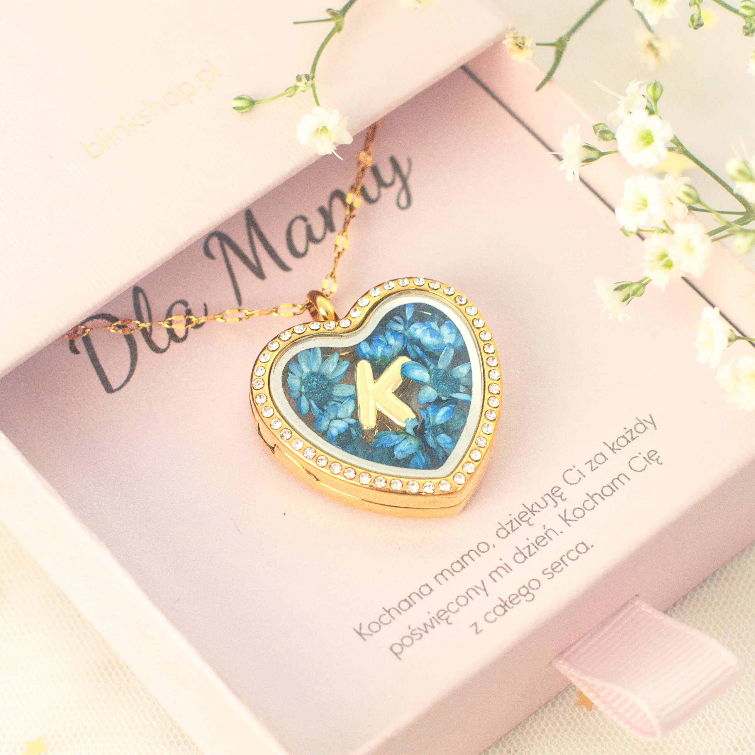 NASZYJNIK SEKRETNIK SERCE Z LITERĄ MEDALION Z KWIATAMI PERSONALIZOWANY PREZENT DLA MAMY