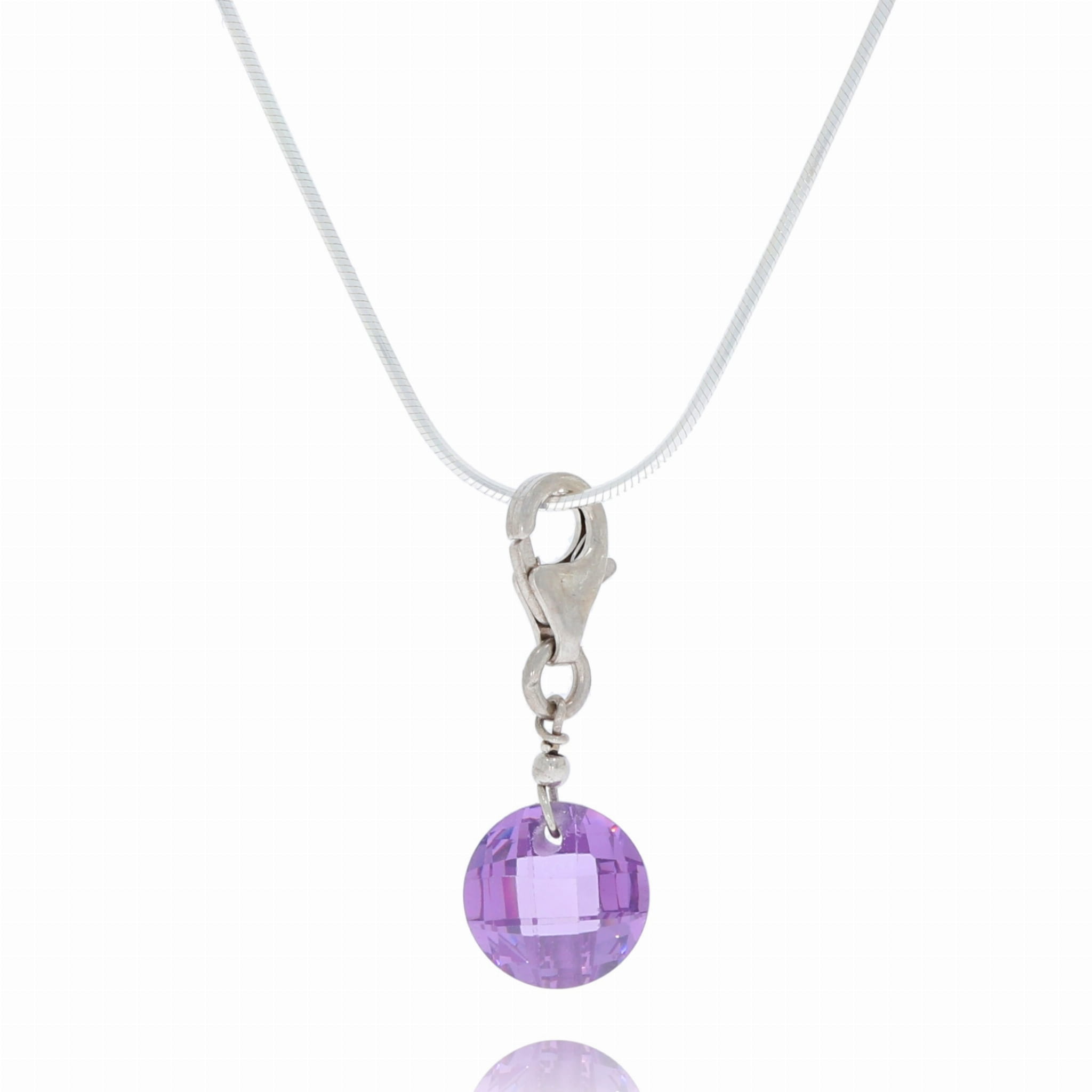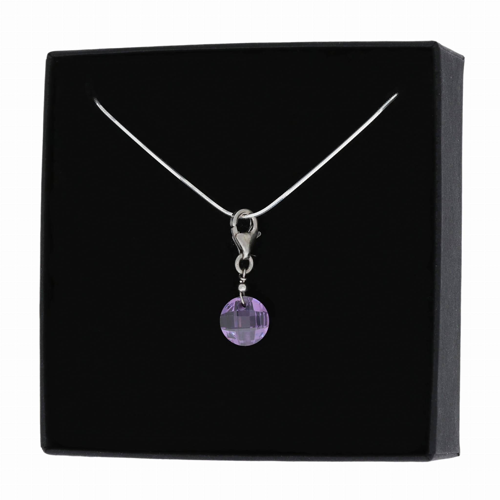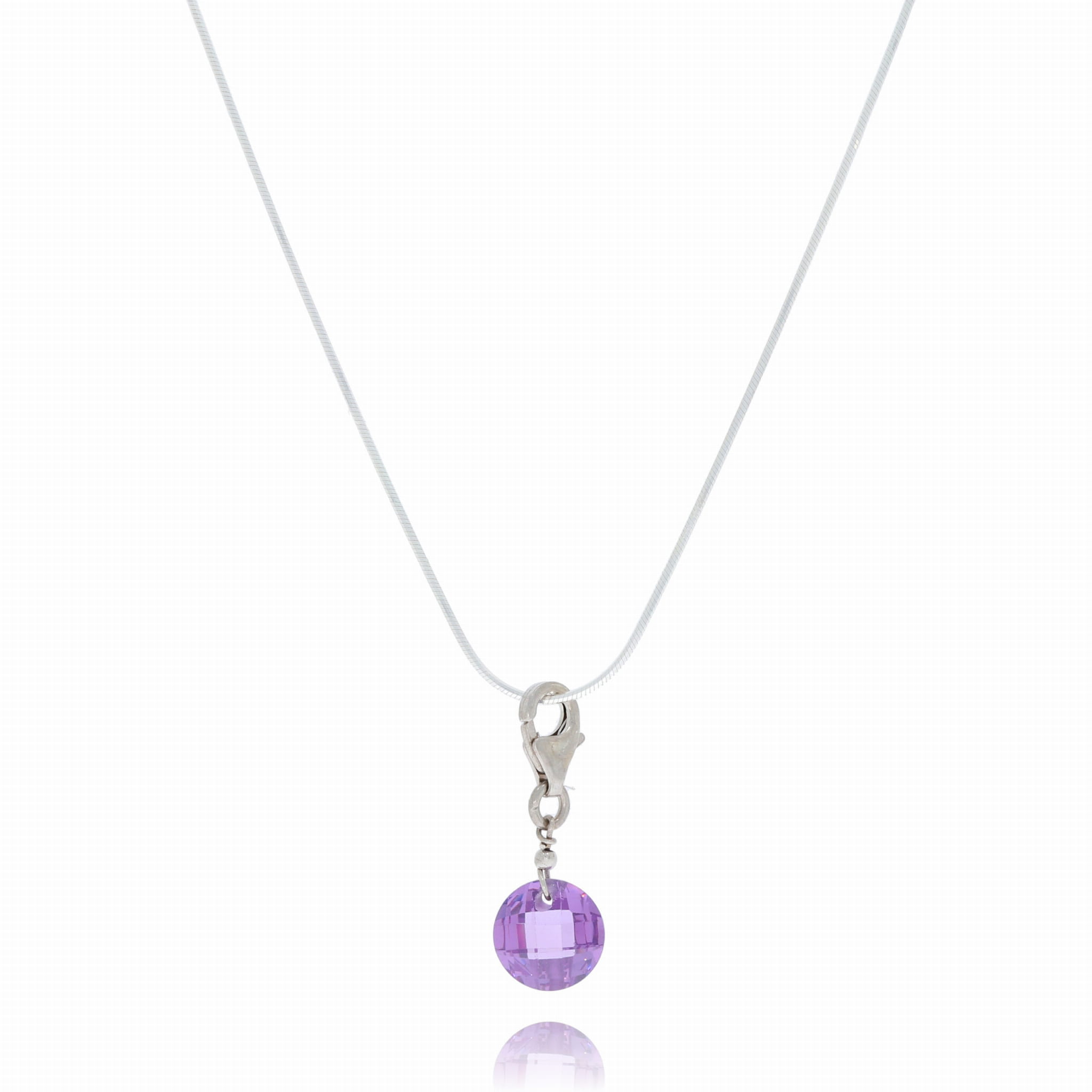NASZYJNIK SREBRNY PRÓBA 925 KRYSZTAŁ SWAROVSKIEGO OKRĄGŁY FIOLETOWY