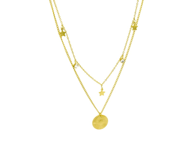 NASZYJNIK STAL 316 L KOLOR ZŁOTY GWIAZDKI KRYSZTAŁKI BLASZKA