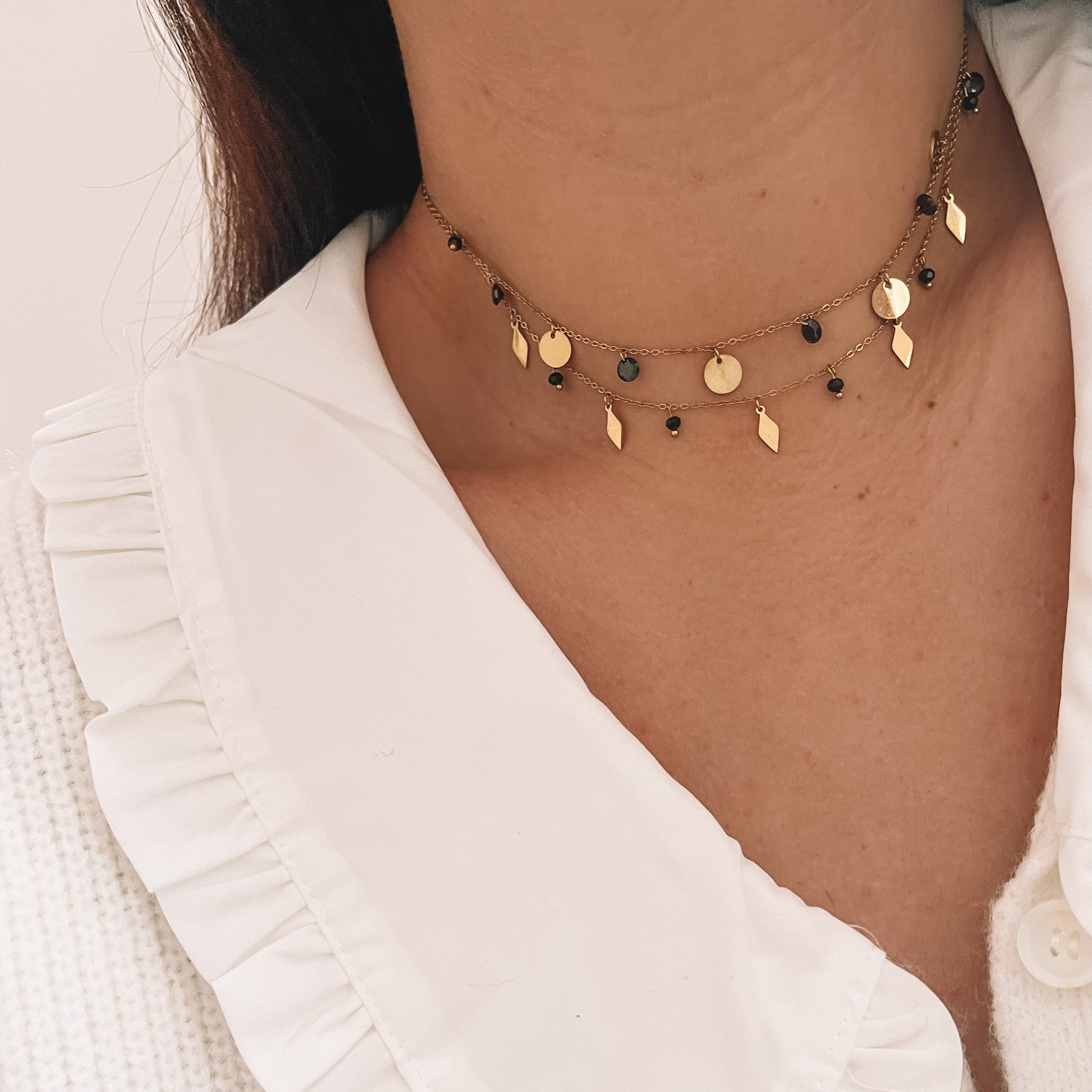 Naszyjnik z najnowszej kolekcji z motywem czarnych kamienie. Doda klasy i elegancji każdej kobiecie.