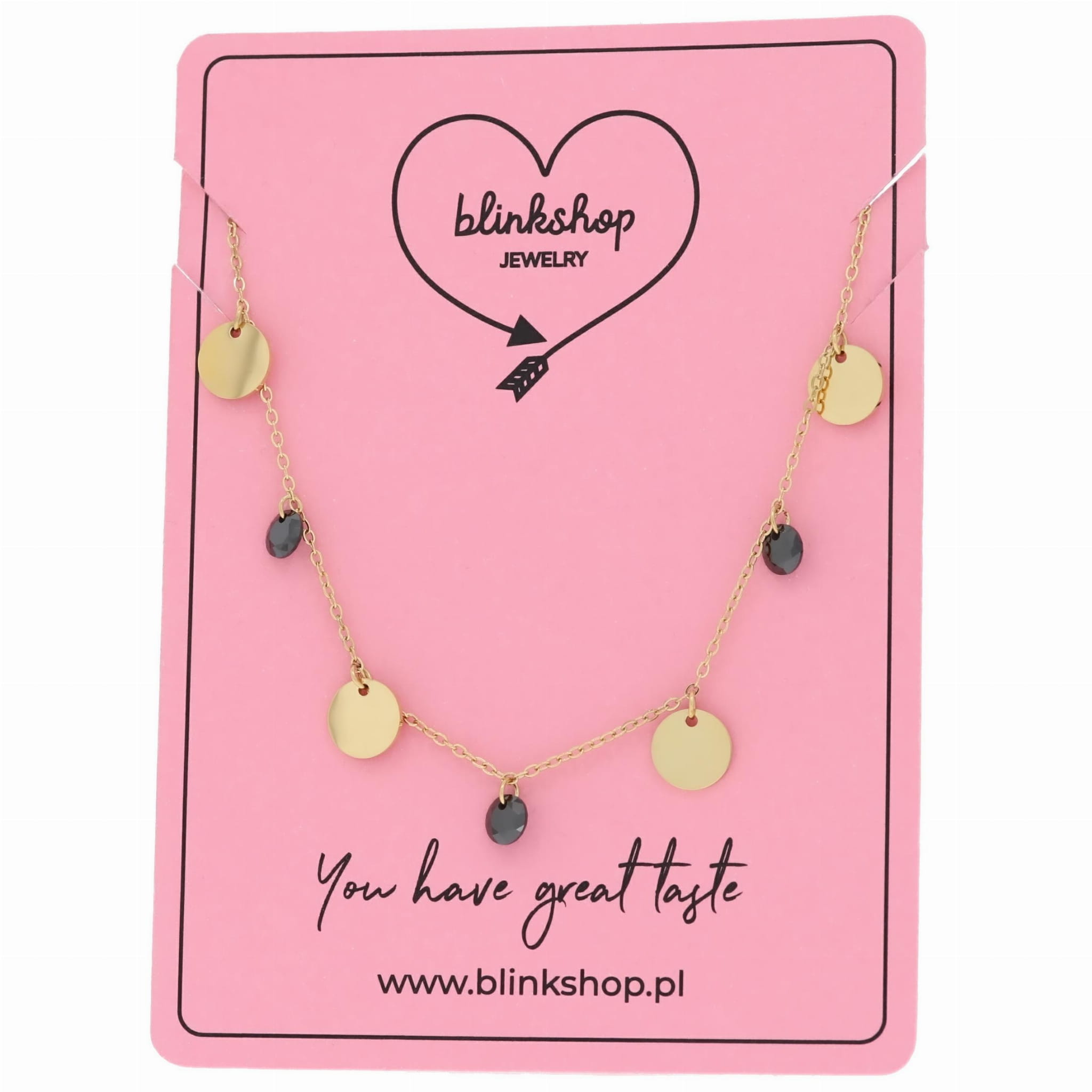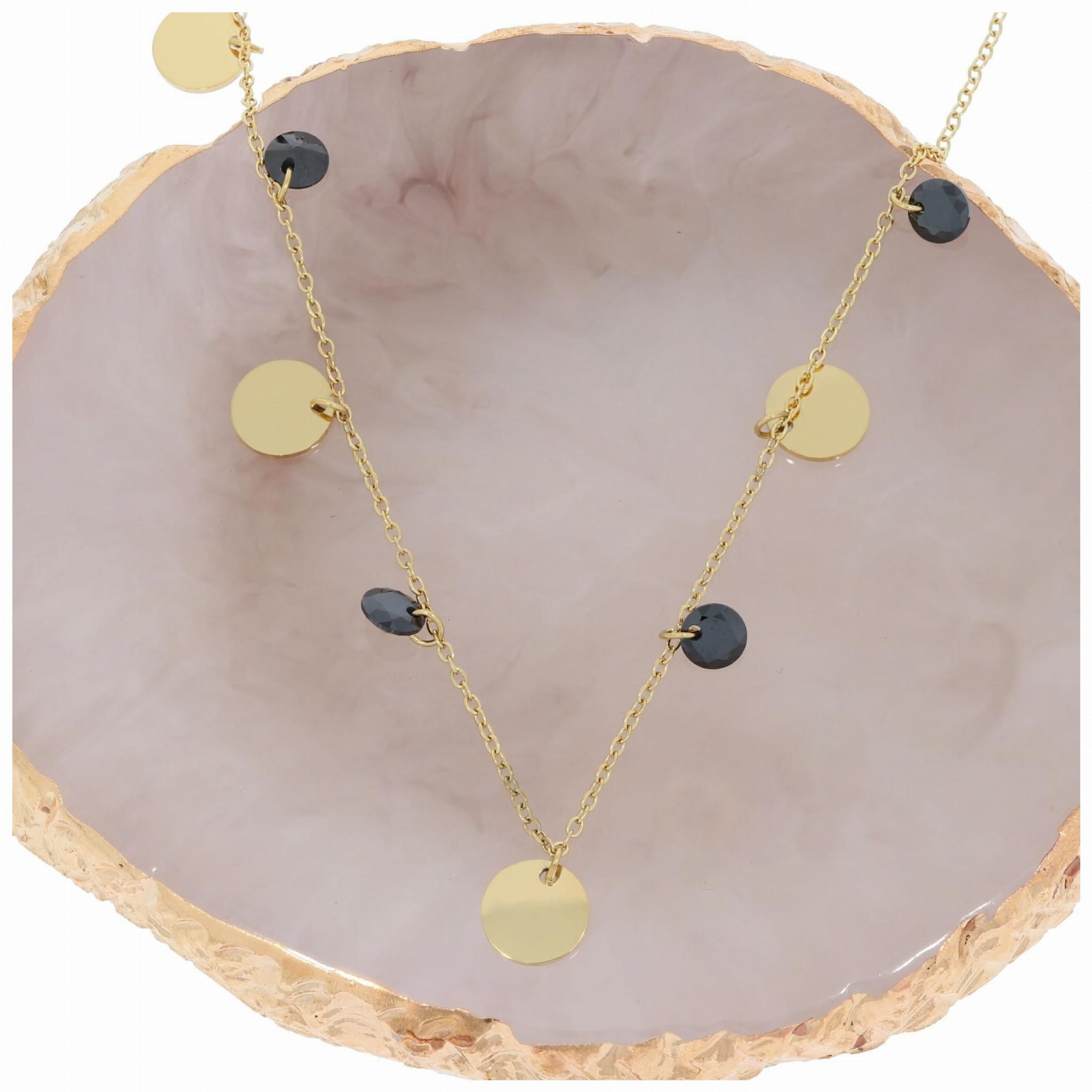 NASZYJNIK STAL CHIRURGICZNA 316 L KOLOR ZŁOTY CZARNE KAMIENIE BLASZKI
