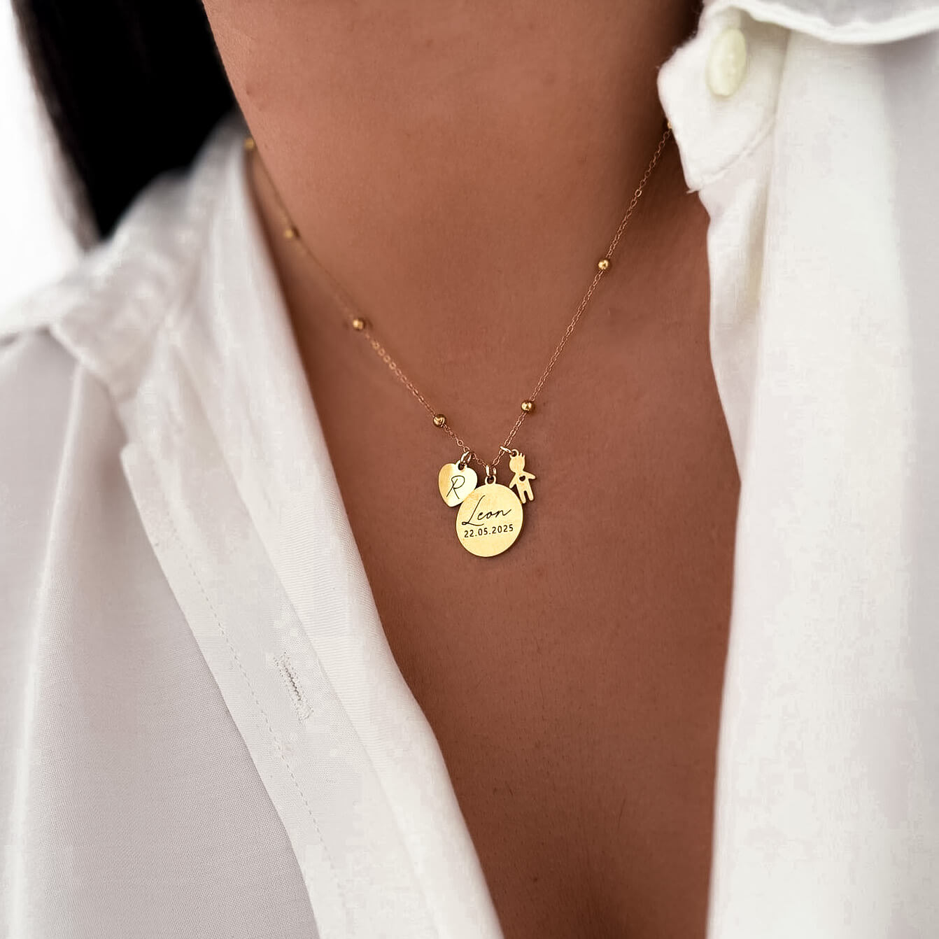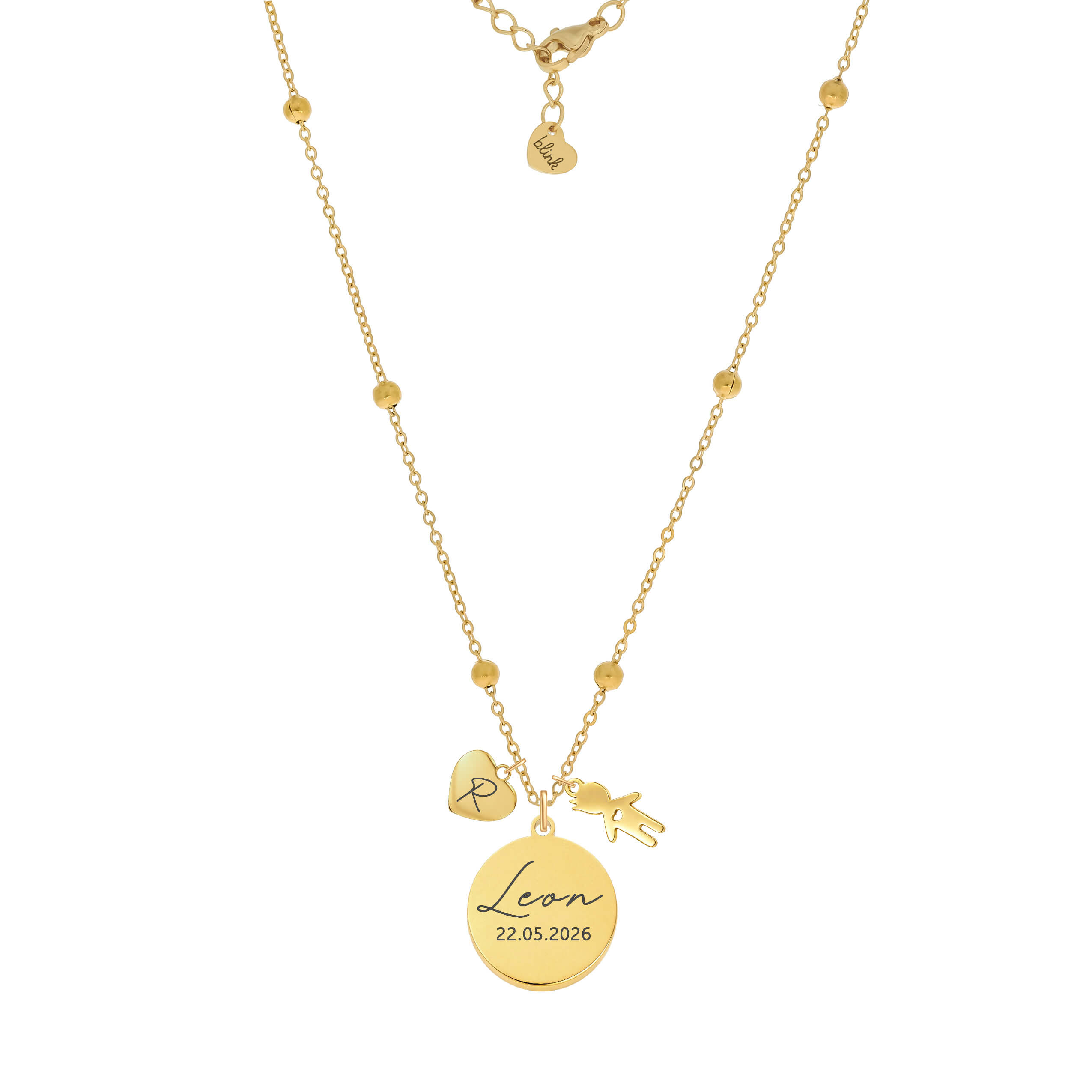 Wyjątkowa pamiątka najpiękniejszego dnia. Ten naszyjnik to sposób, by zatrzymać na zawsze moment narodzin dziecka. Imię i data urodzenia wygrawerowane na zawieszce tworzą osobistą historię, którą możesz nosić blisko serca każdego dnia. Dodatkowe zawieszki – serduszko z inicjałem oraz figurka dziecka – nadają całości wyjątkowego, symbolicznego charakteru. To idealny prezent dla świeżo upieczonej mamy.