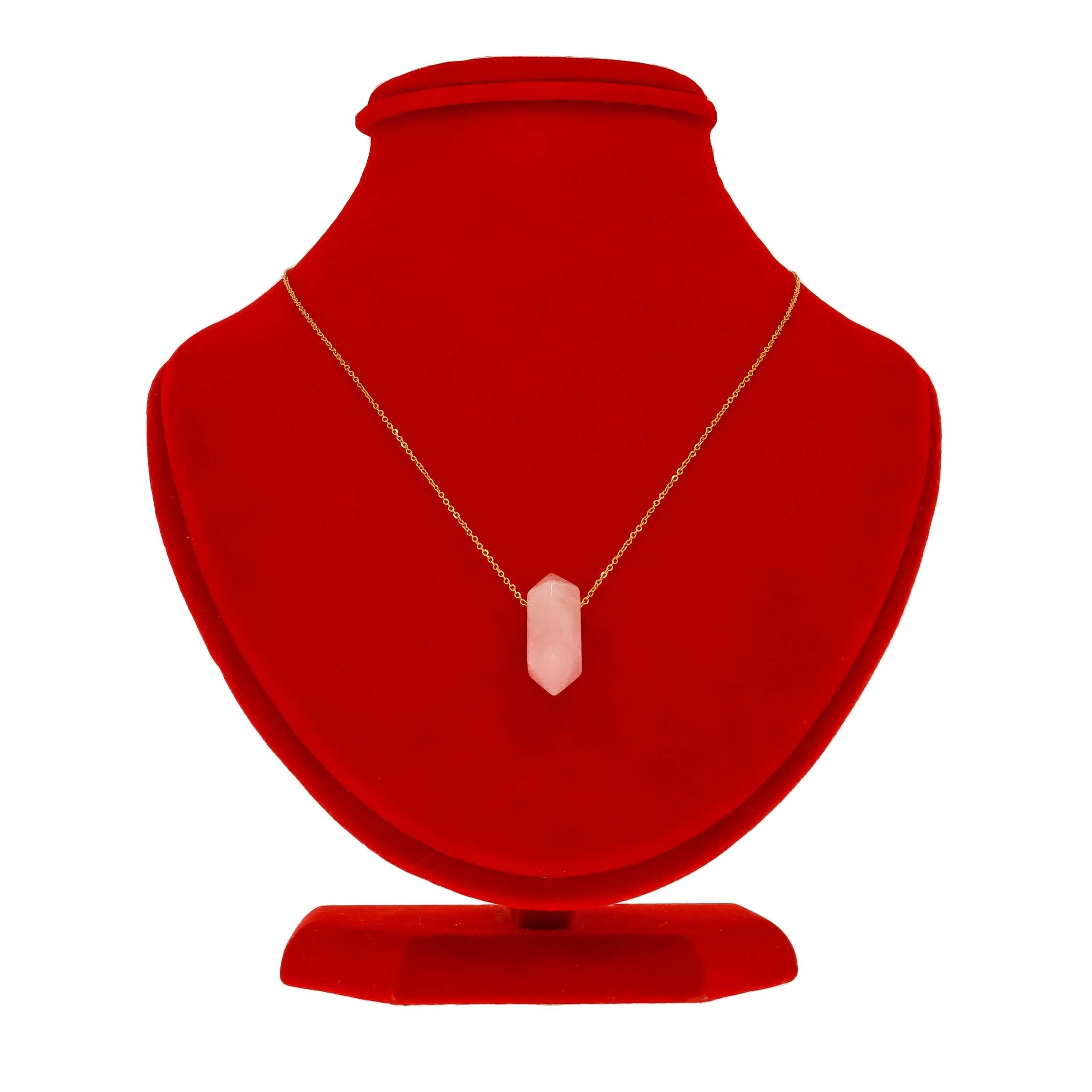 NASZYJNIK ZE STALI SZLACHETNEJ KRYSZTAŁ KWARC RÓŻOWY KLASYCZNY BRYŁKA