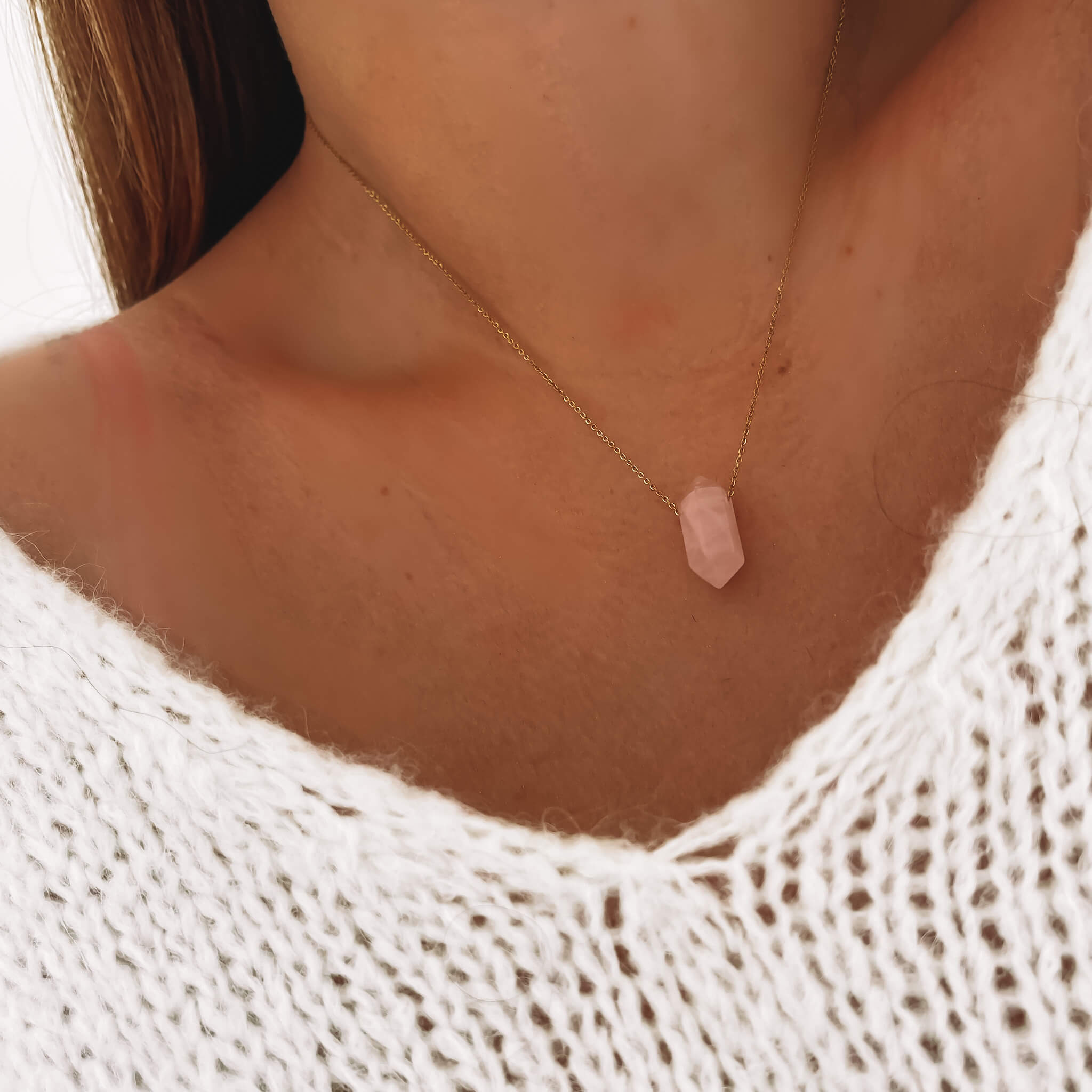 NASZYJNIK ZE STALI SZLACHETNEJ KWARC RÓŻOWY KLASYCZNY