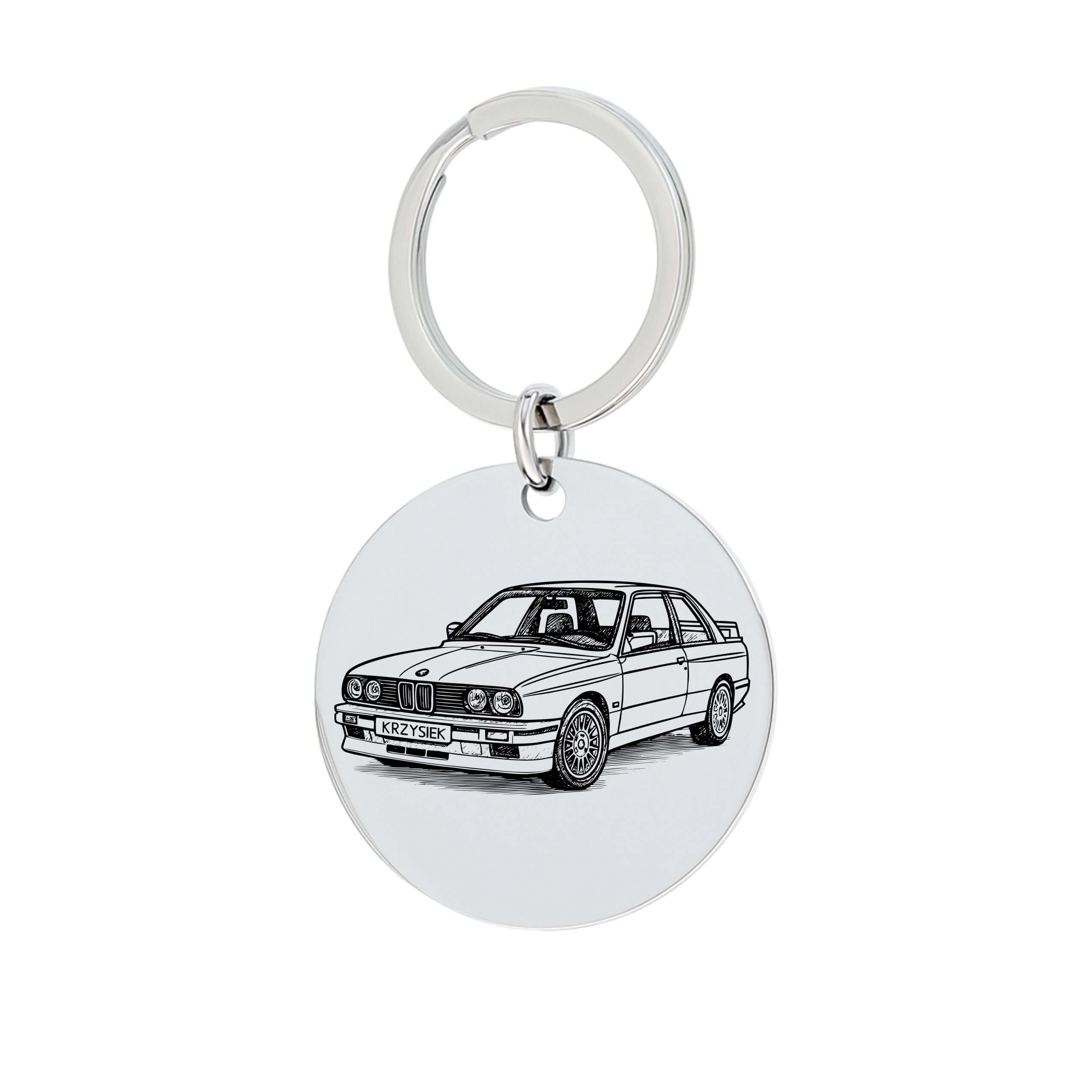 OKRĄGŁY BRELOK Z RYSUNKIEM TWOJEGO AUTA STAL CHIRURGICZNA 316L PREZENT DLA NIEGO
