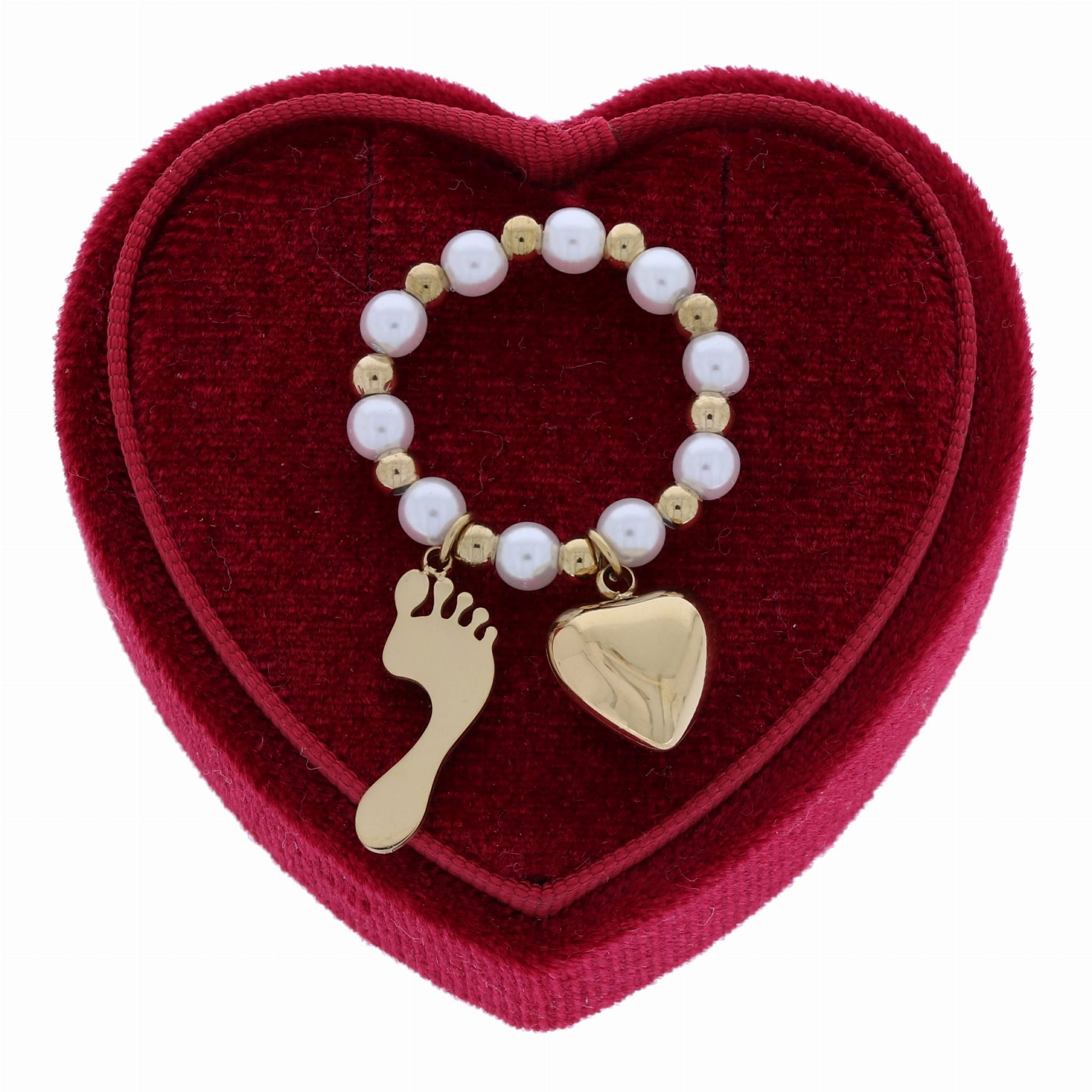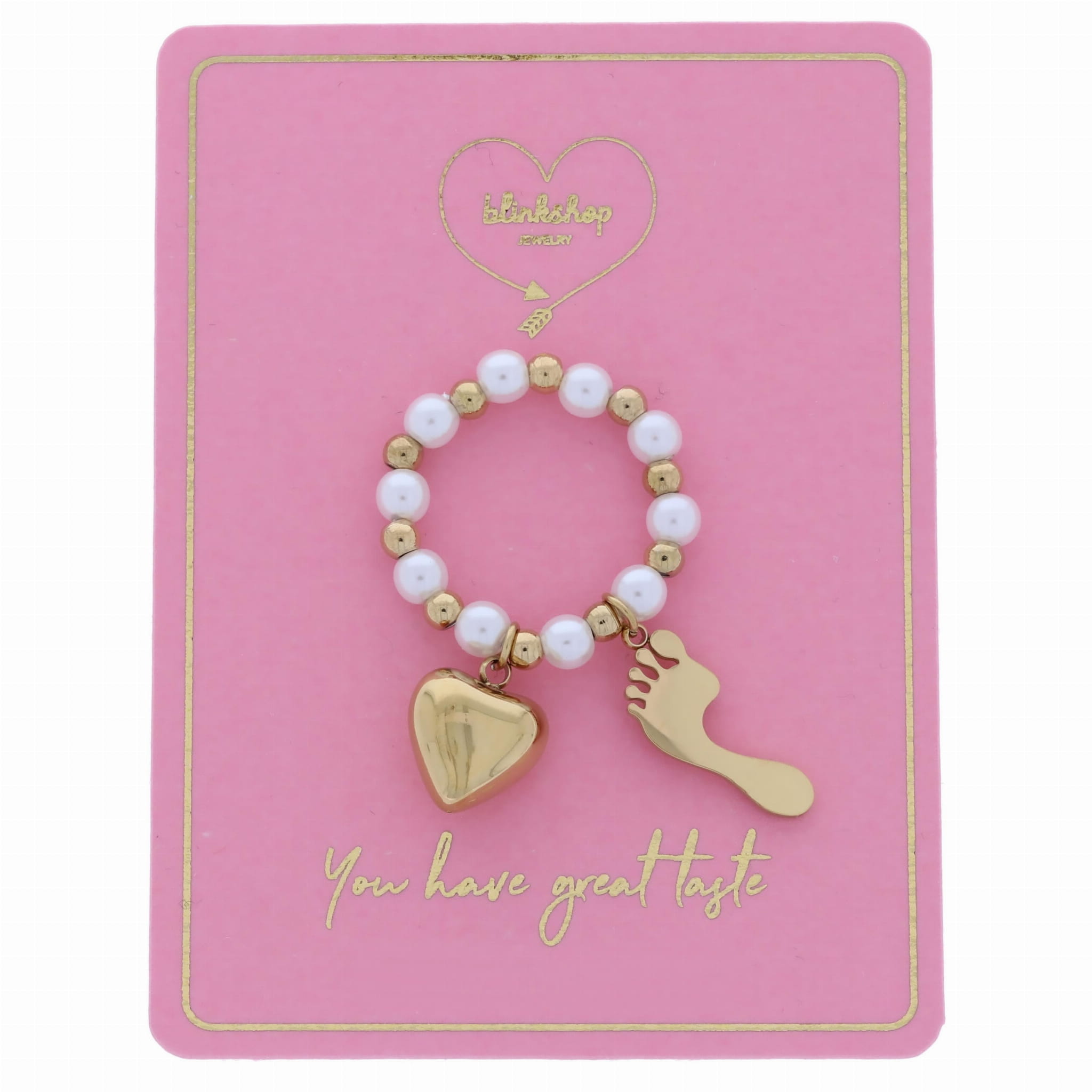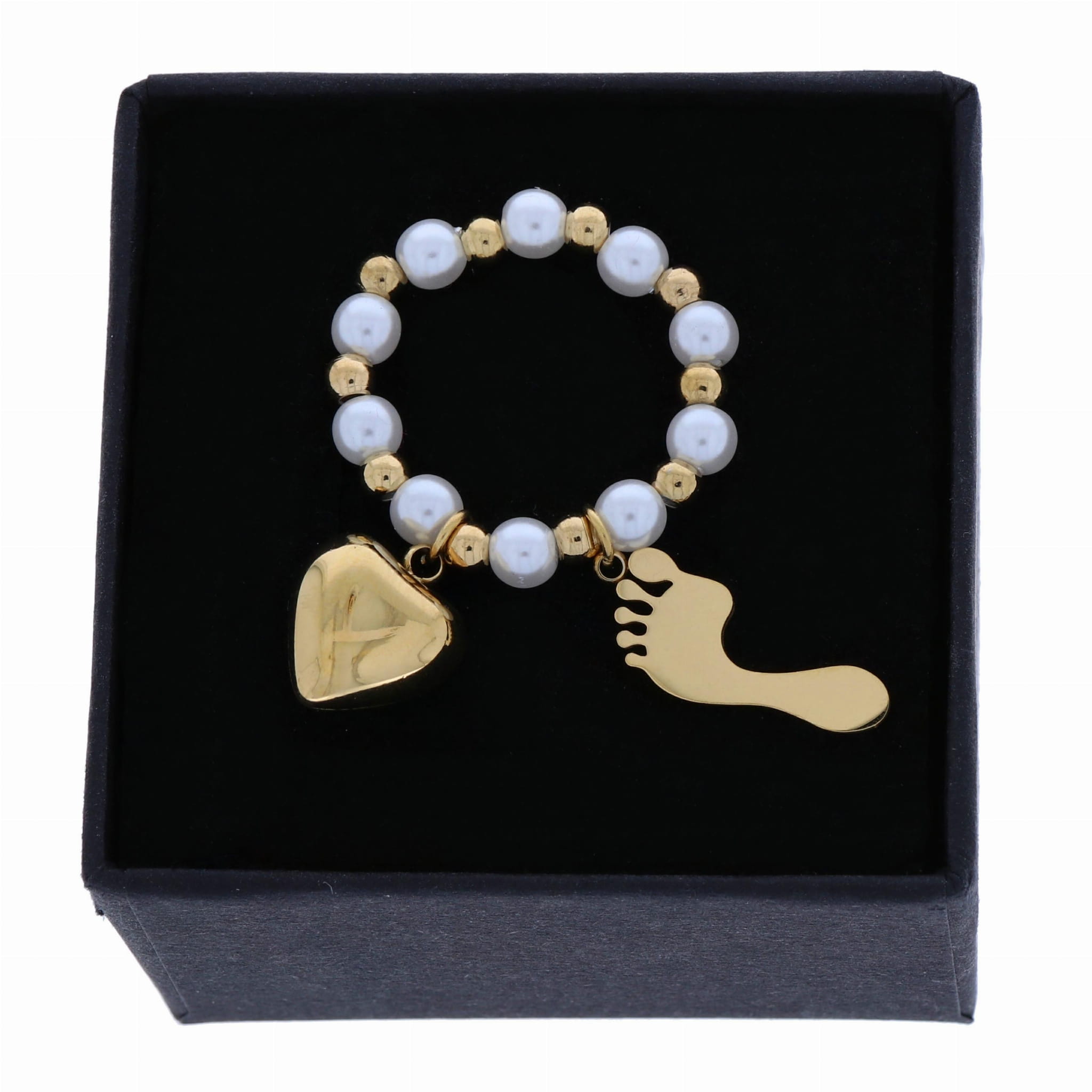 PIERŚCIONEK ELASTYCZNY ZE STALI CHIRURGICZNEJ ZAWIESZKI SERCE STÓPKA KOLOR ZŁOTY