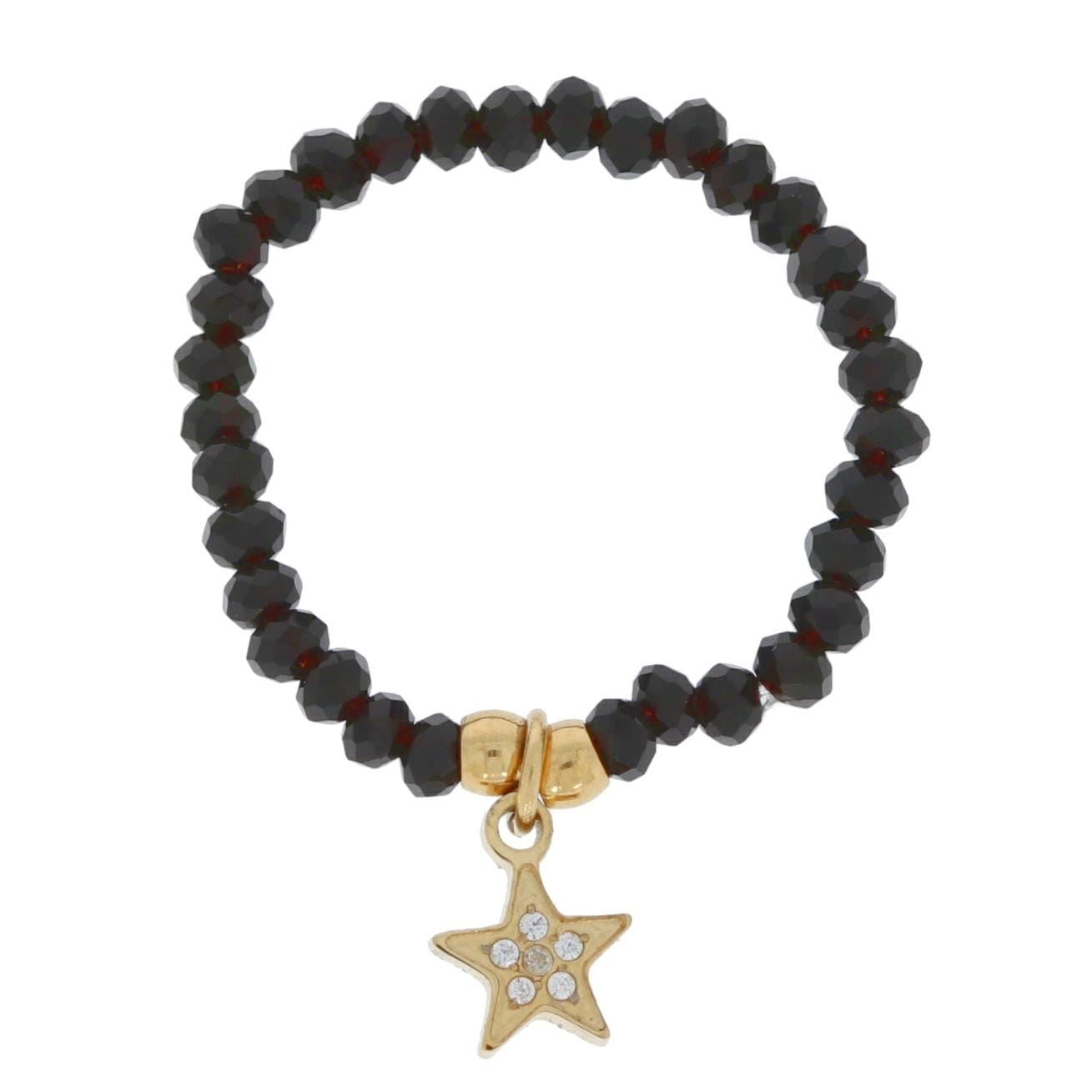 PIERŚCIONEK ZE STALI CHIRURGICZNEJ CZARNE KRYSZTAŁKI Z ZAWIESZKĄ GWIAZDKA KOLOR ZŁOTY