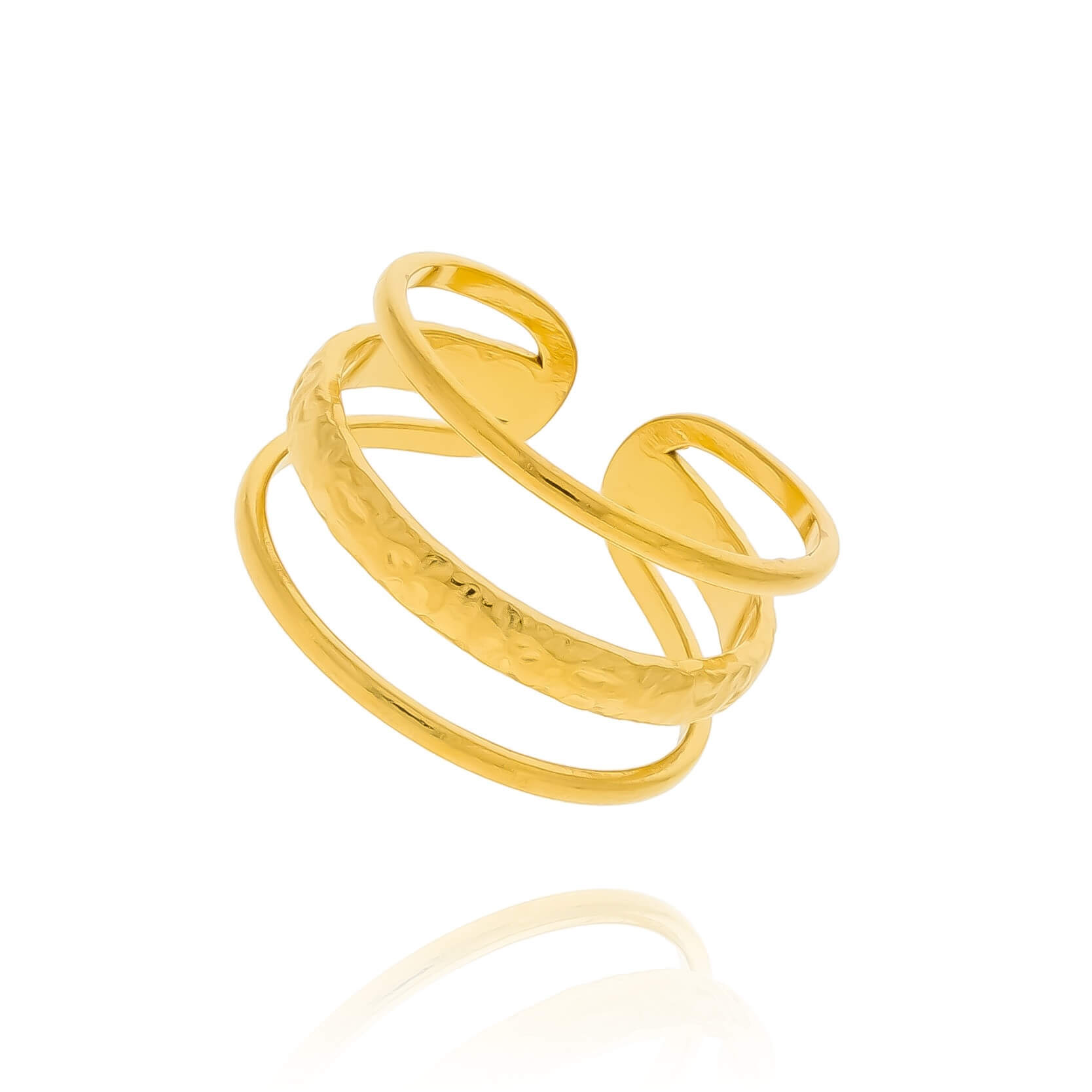 PIERŚCIONEK ZŁOTA POTRÓJNA OBRĄCZKA ZE STALI CHIRURGICZNEJ BOHO