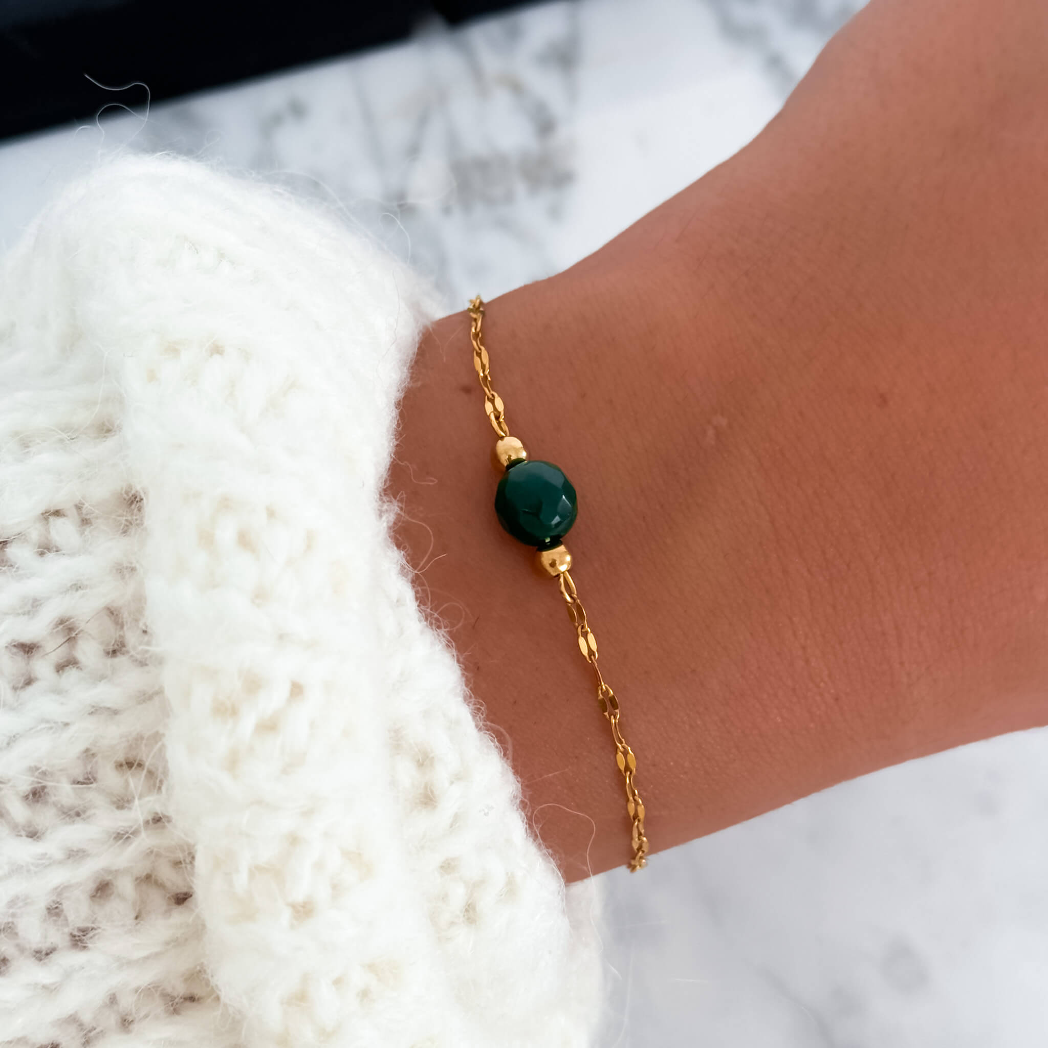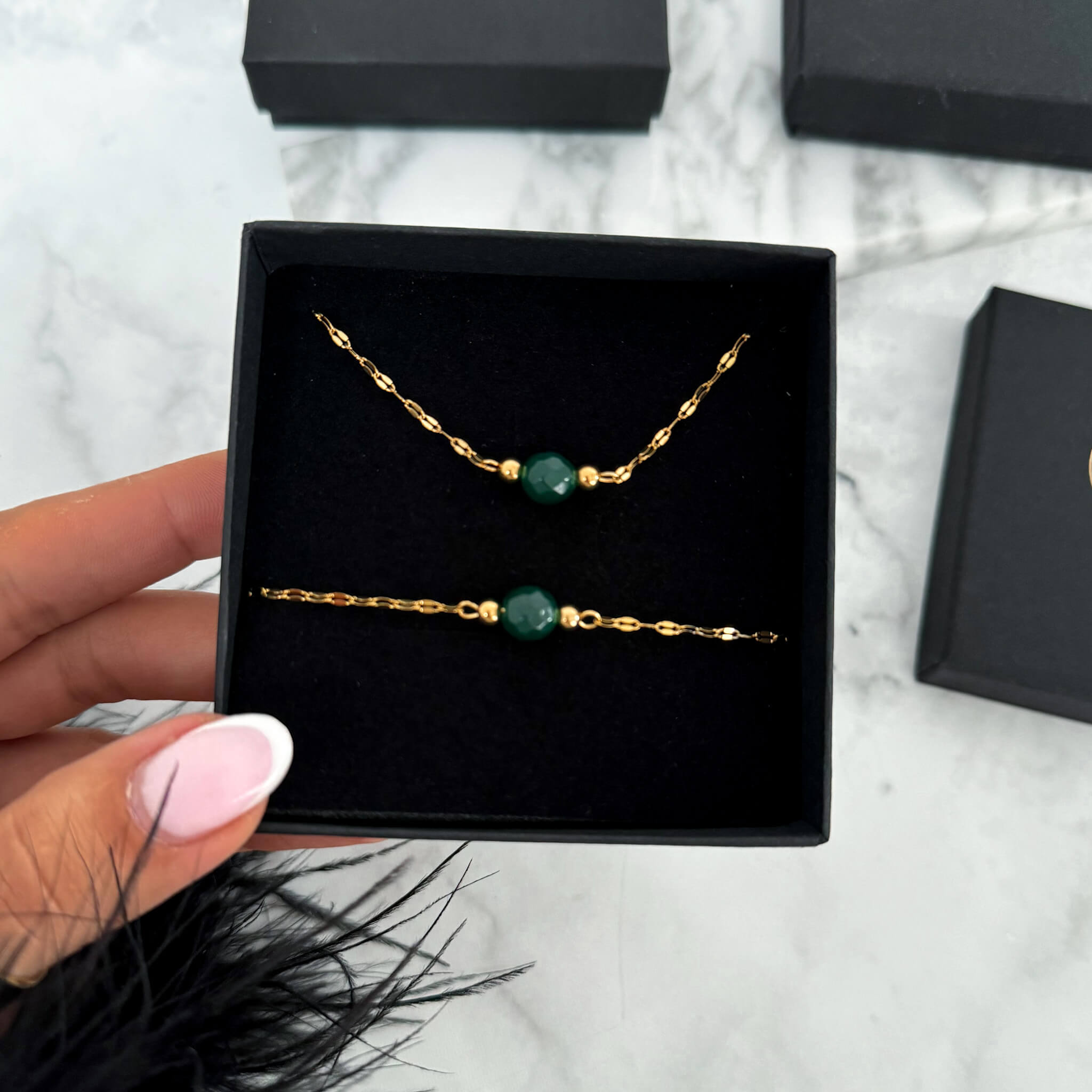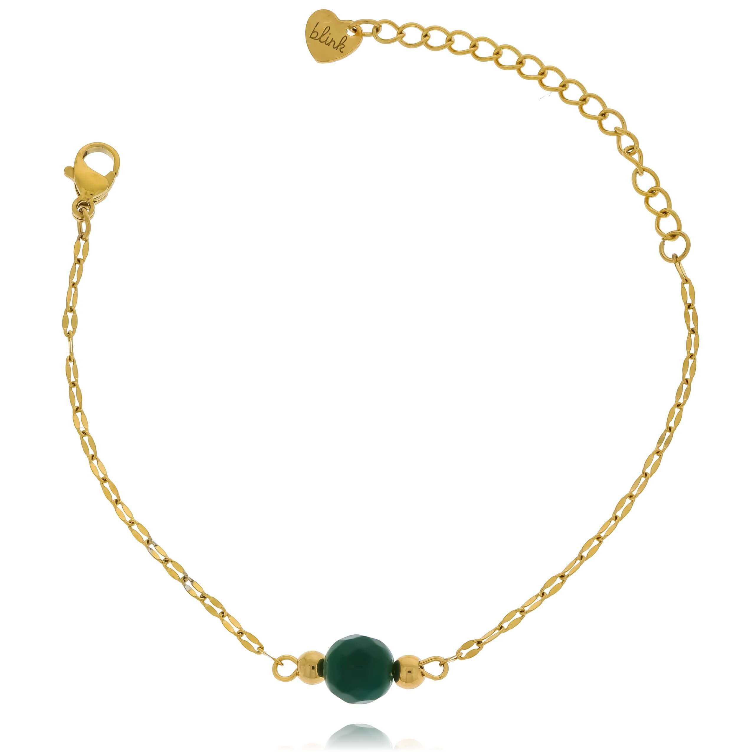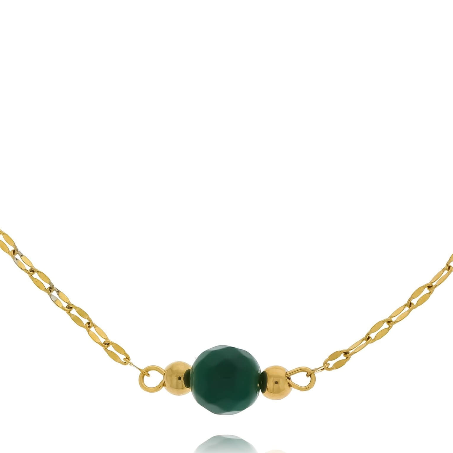POZŁACANA BRANSOLETKA Z KAMIENIEM NATURALNYM JADEIT BUTELKOWA ZIELEŃ
