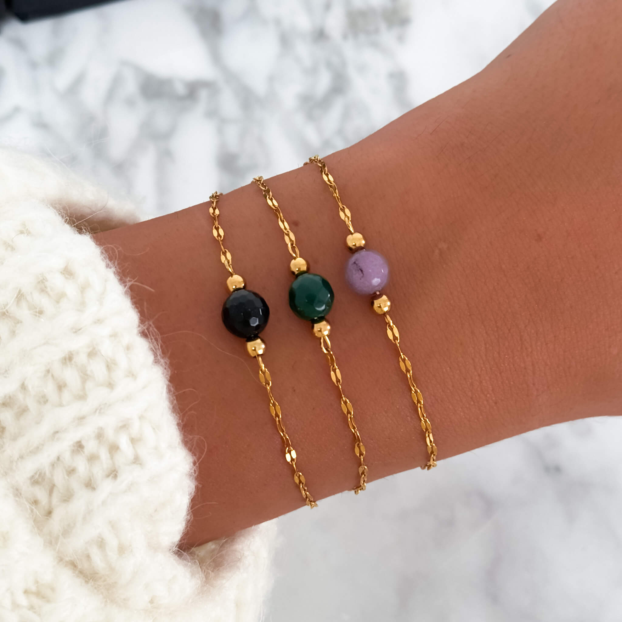 Bransoletka z kamieniem naturalnym wykonana ze stali pozłacanej to wyjątkowy element biżuterii, który wyróżnia się elegancją i trwałością. Stal nierdzewna, pokryta warstwą złota, nadaje całości luksusowy wygląd, a centralnym punktem jest kamień naturalny. Każdy kamień charakteryzuje się niepowtarzalnym kolorem i strukturą, co sprawia, że każda bransoletka jest unikatowa. Połączenie naturalnego piękna kamienia z elegancją pozłacanej stali tworzy idealny dodatek do codziennych stylizacji oraz bardziej formalnych okazji.