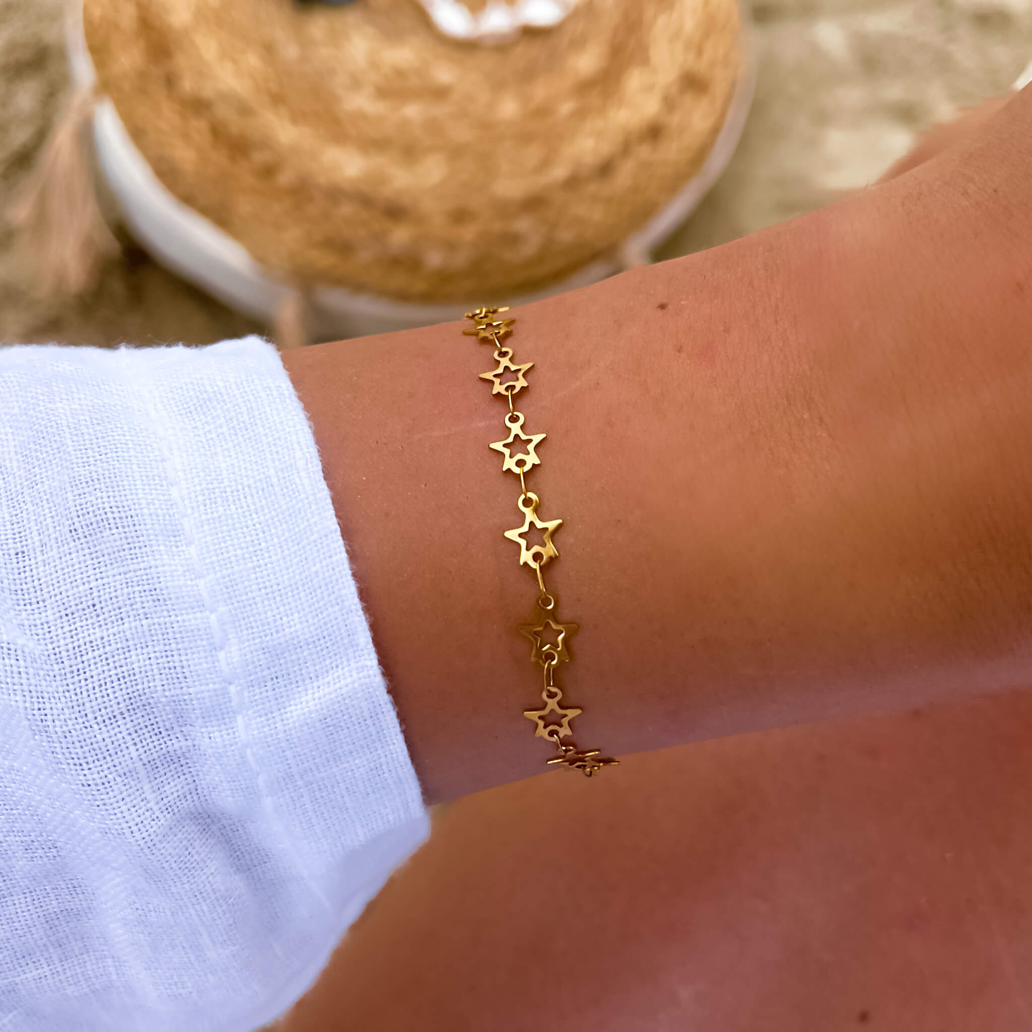 POZŁACANA BRANSOLETKA ZE STALI CHIRURGICZNEJ GWIAZDKI