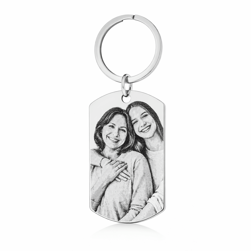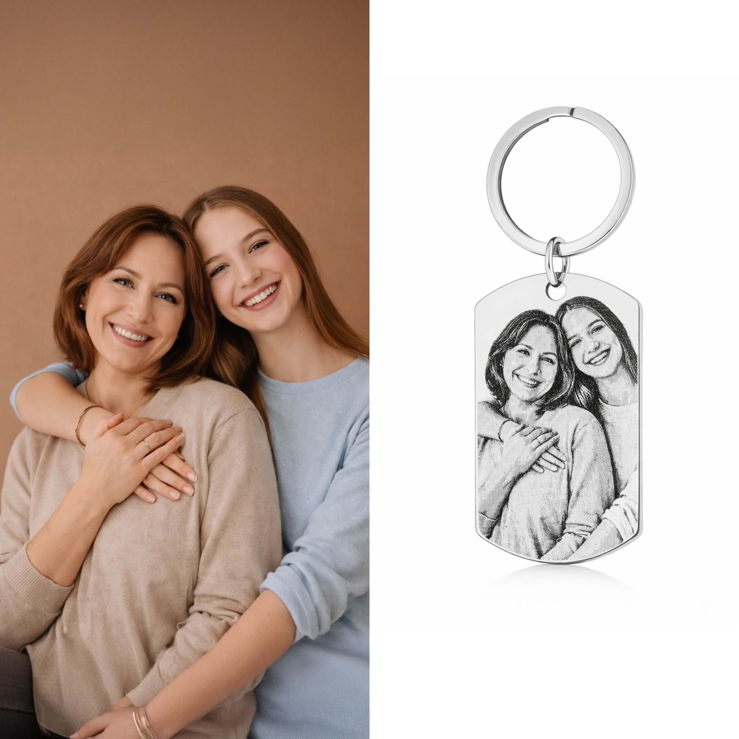 PREZENT DLA MAMY – PERSONALIZOWANY PODŁUŻNY BRELOK DO KLUCZY LUB TOREBKI Z GRAWEREM ZDJĘCIA