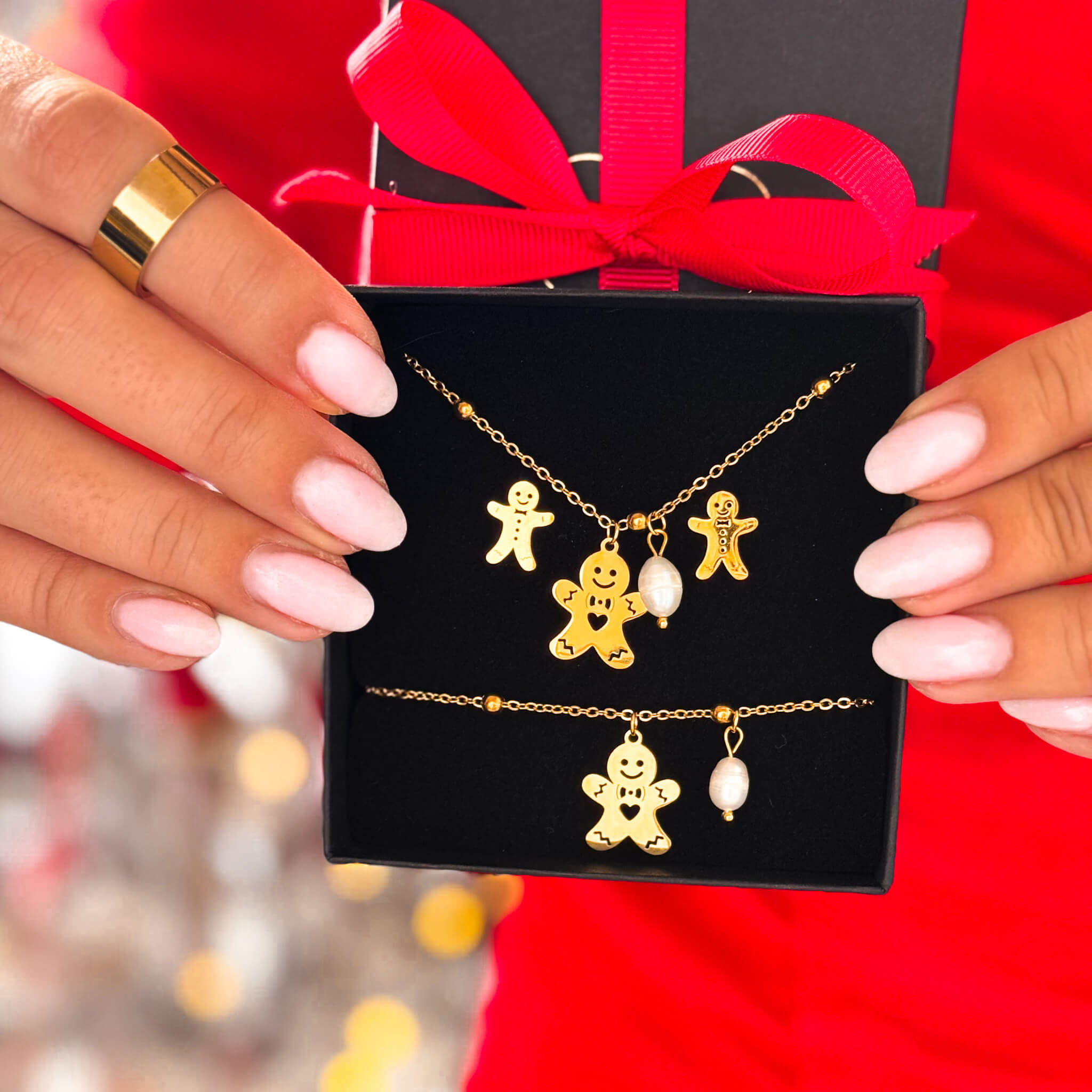 ZESTAW BIŻUTERII CIASTECZKO Z PEREŁKĄ POZŁACANA STAL CHIRURGICZNA
