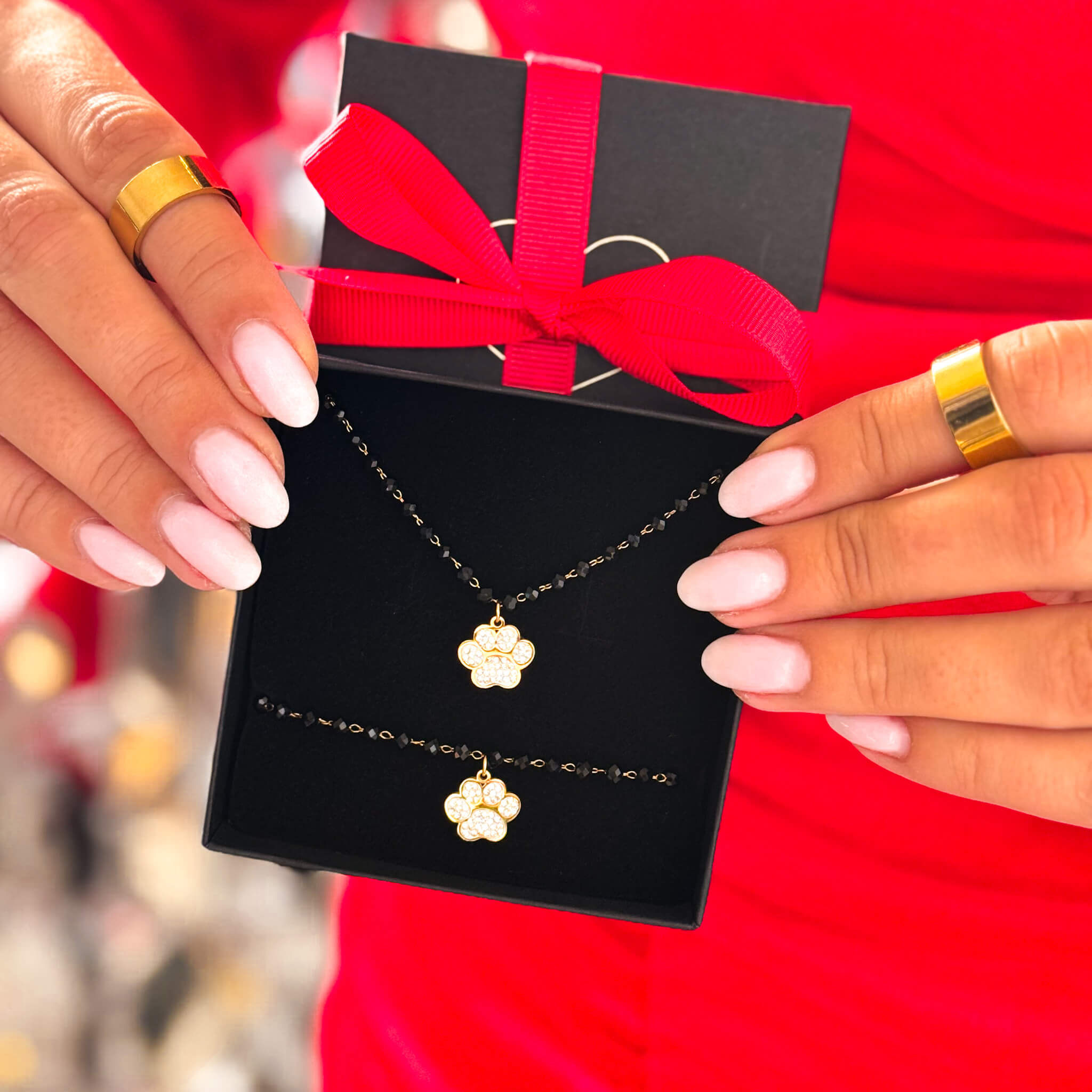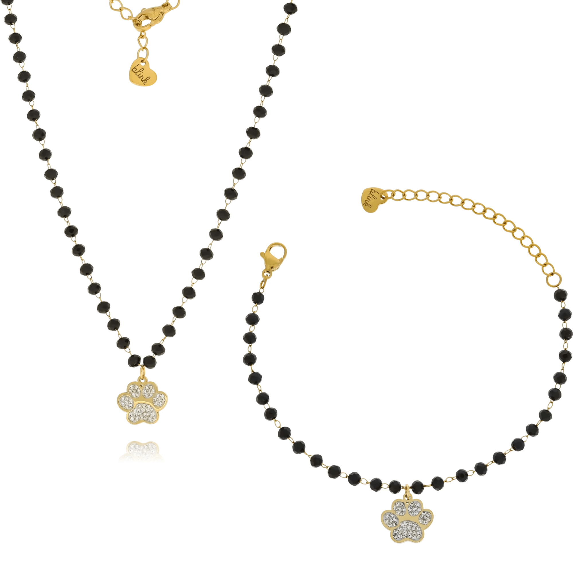 ZESTAW BIŻUTERII ŁAPKI Z BIAŁYMI KRYSZTAŁKAMI POZŁACANA STAL CHIRURGICZNA
