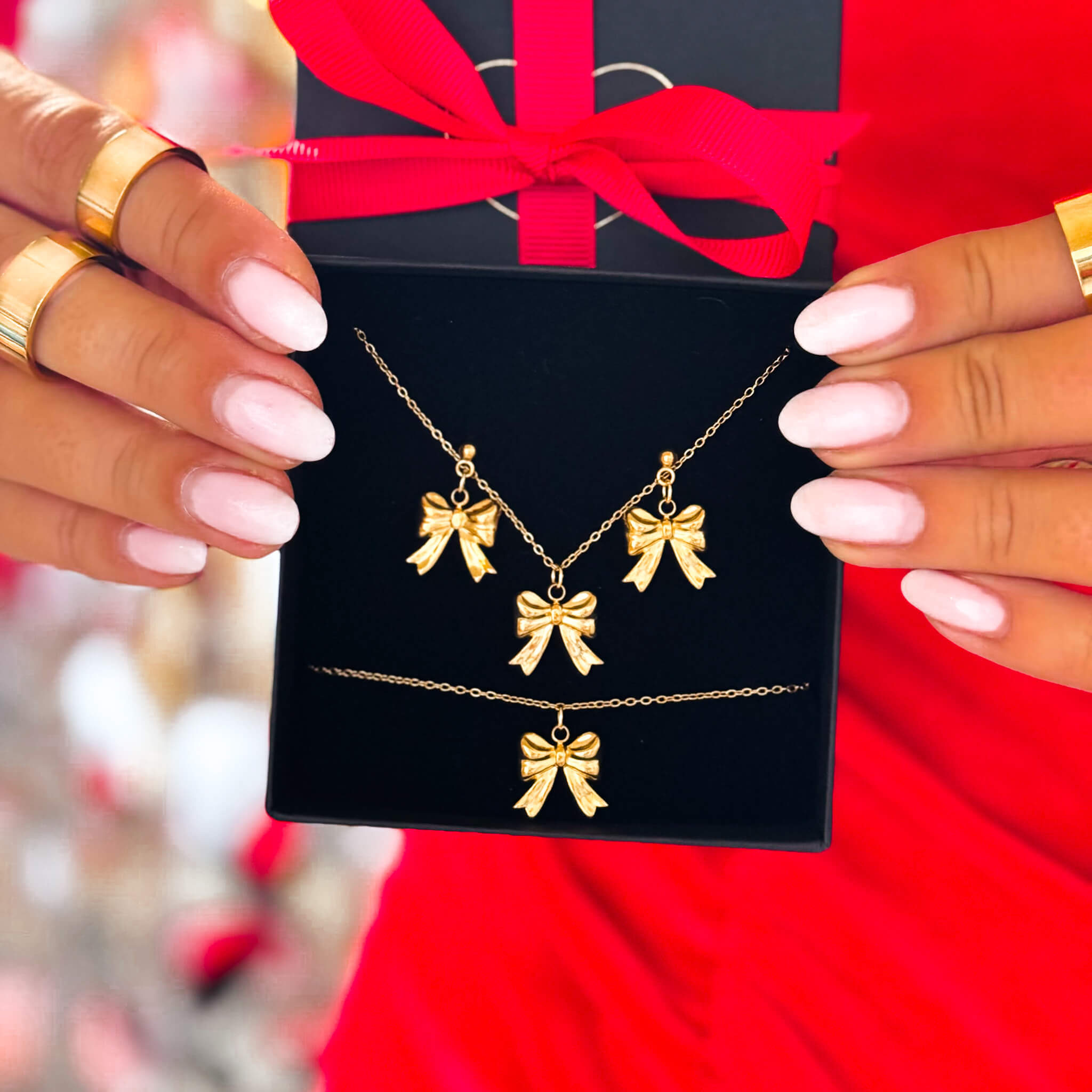 ZESTAW BIŻUTERII Z KOKARDKAMI POZŁACANA STAL CHIRURGICZNA