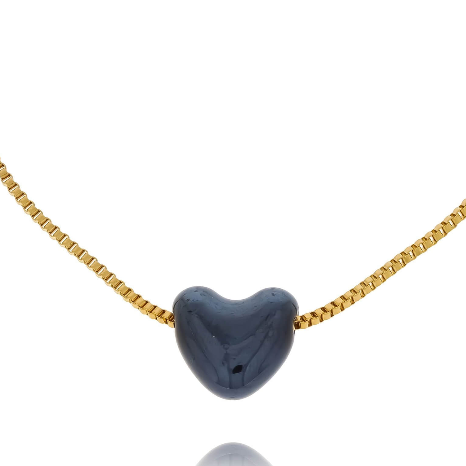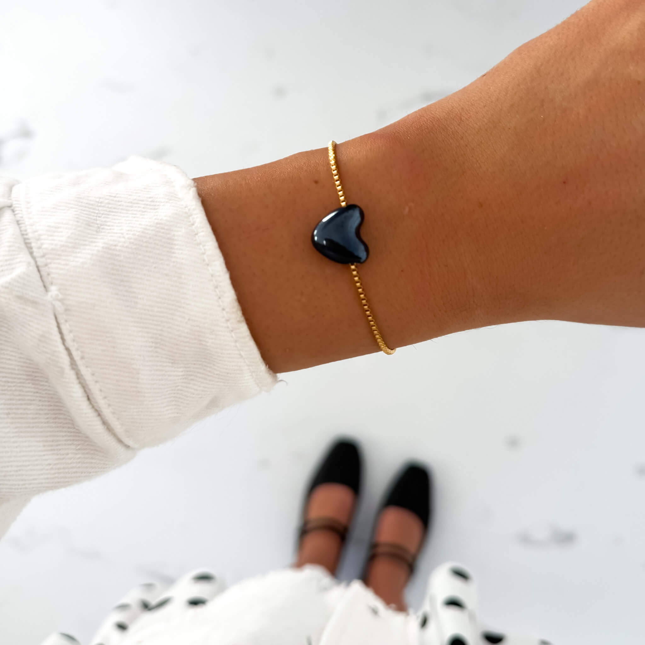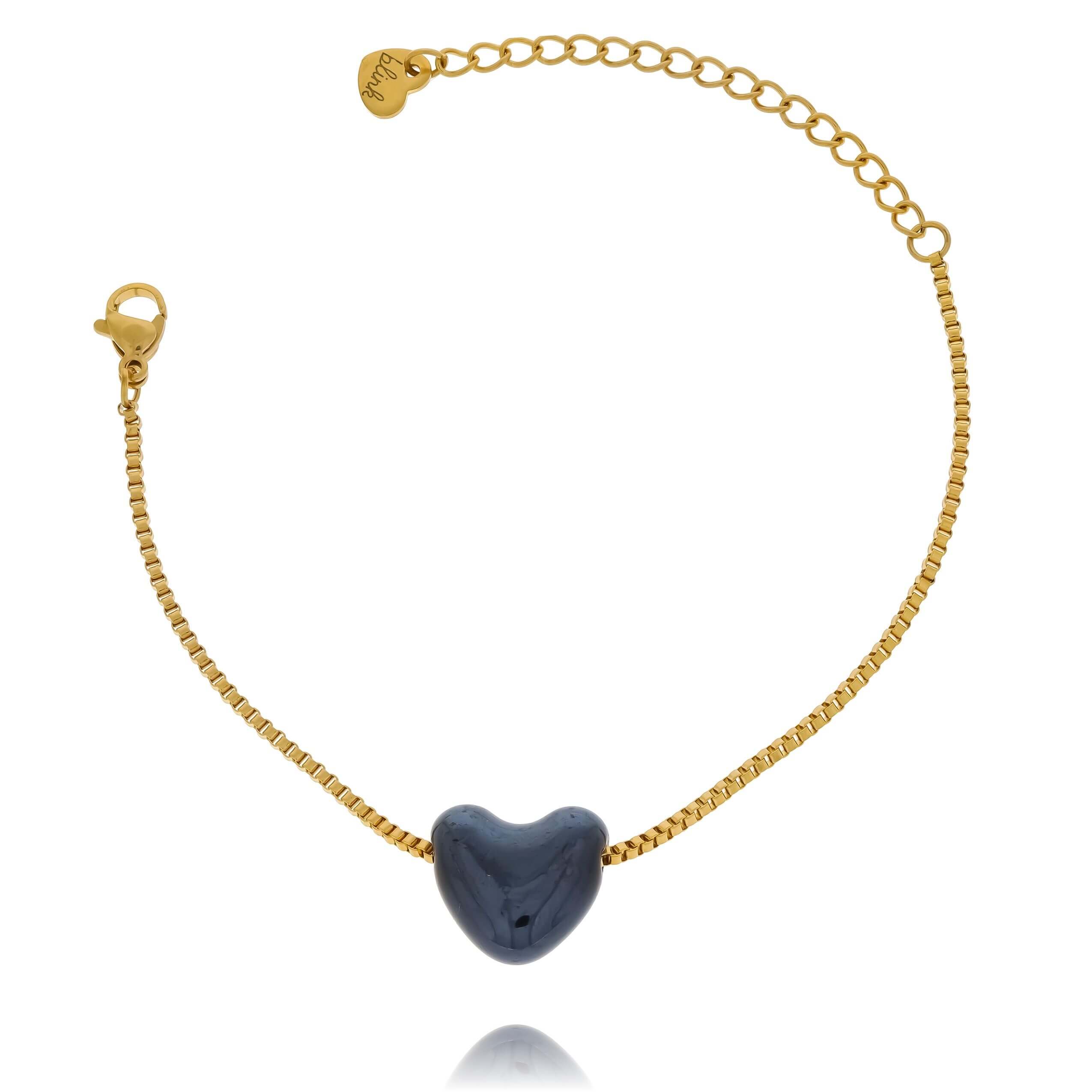 ZŁOTA BRANSOLETKA ZE STALI CHIRURGICZNEJ Z CERAMICZNYM CZARNYM SERCEM
