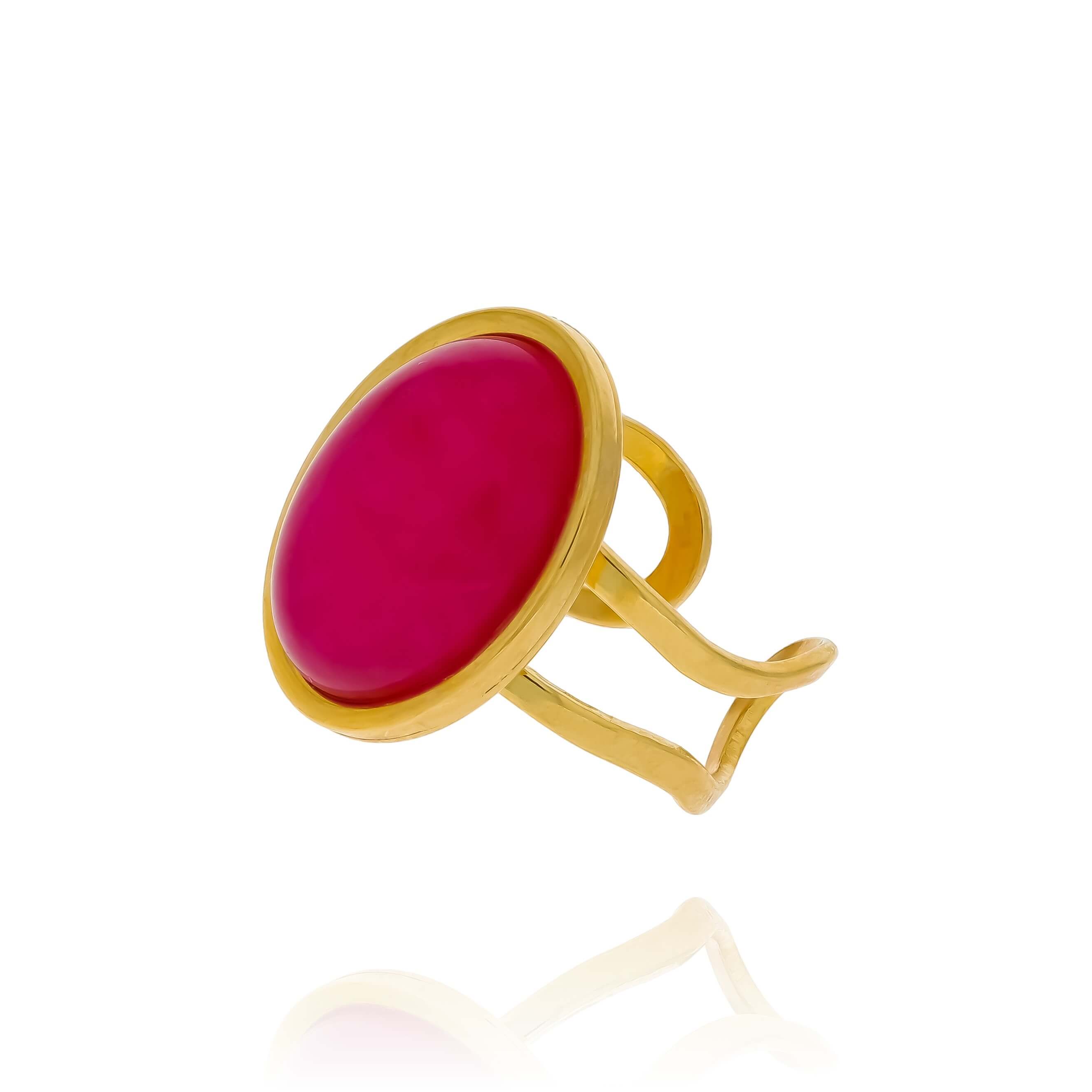 materiał: pozłacana stal chirurgiczna 316 L, kamień naturalny agat różowy