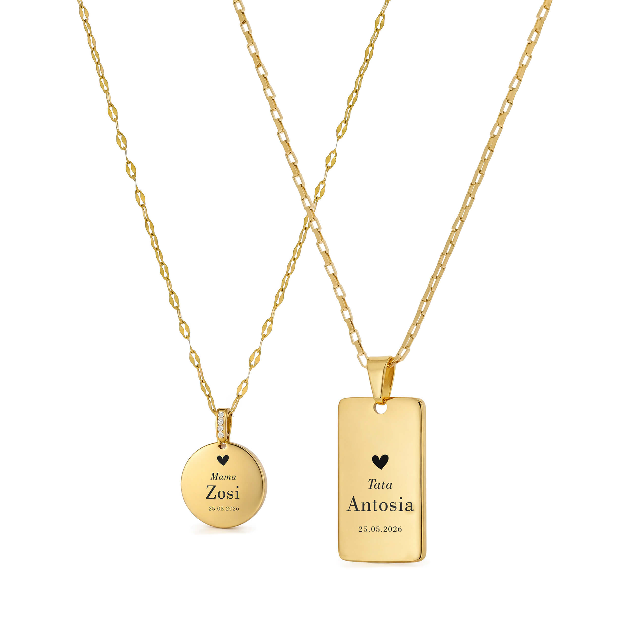 ZŁOTY KOMPLET NASZYJNIKÓW DLA MAMY I TATY PERSONALIZOWANY GRAWER Z IMIENIEM I DATĄ DZIECKA PREZENT
