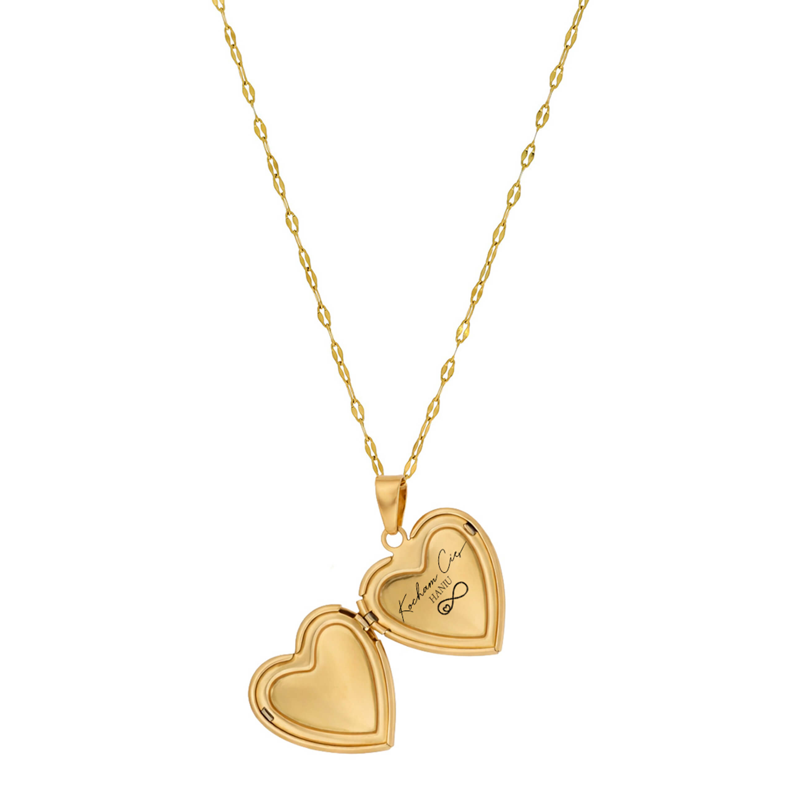 Ten złoty medalion w kształcie serca to wyjątkowy, otwierany naszyjnik stworzony na prawdziwie osobisty prezent. Na zewnątrz możesz umieścić subtelny grawer, a wewnątrz medalionu wygrawerujemy dodatkowy, prywatny tekst – widoczny tylko po otwarciu.