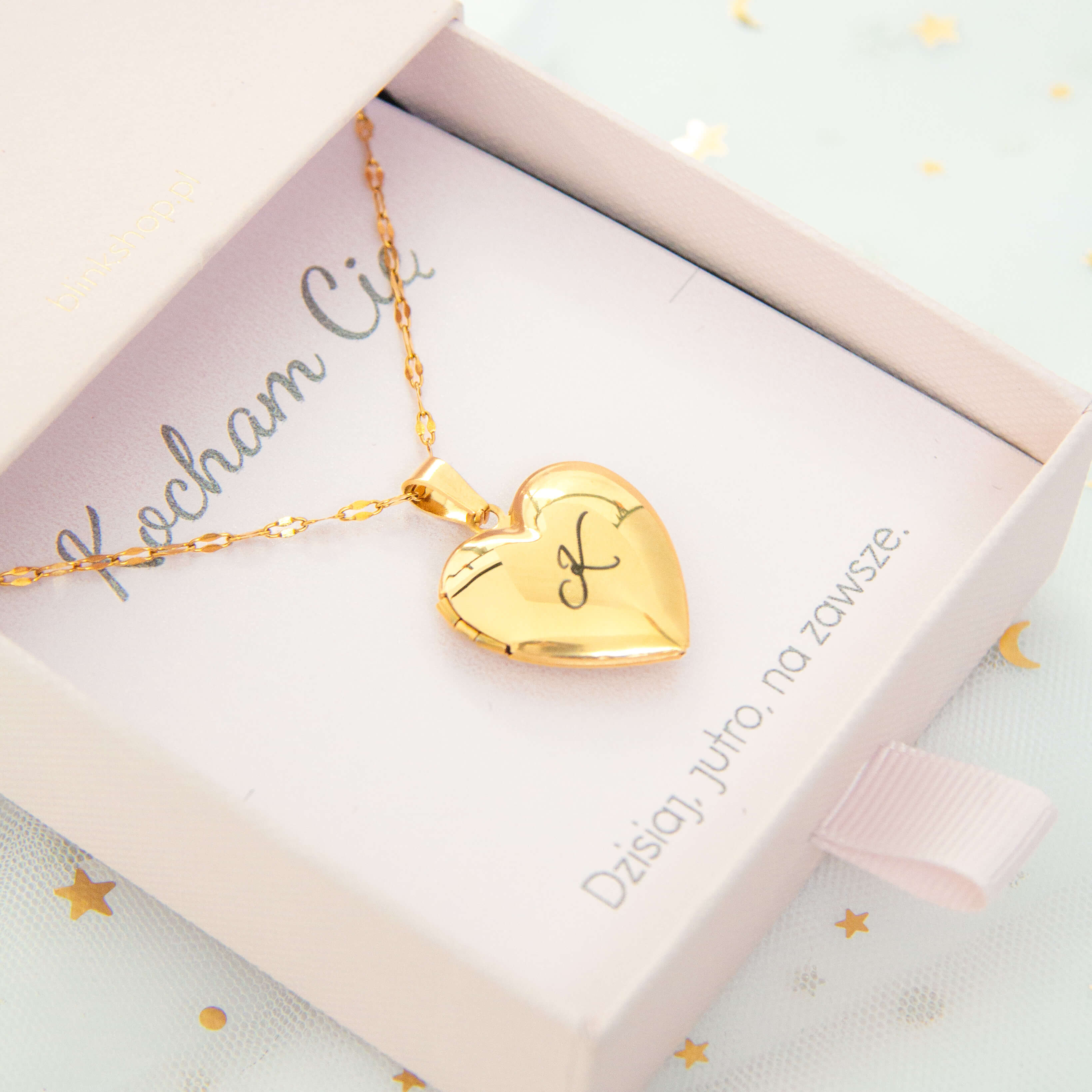 ZŁOTY MEDALION SEKRETNIK SERCE Z GRAWEREM OTWIERANY NASZYJNIK Z PERSONALIZACJĄ DLA ŻONY